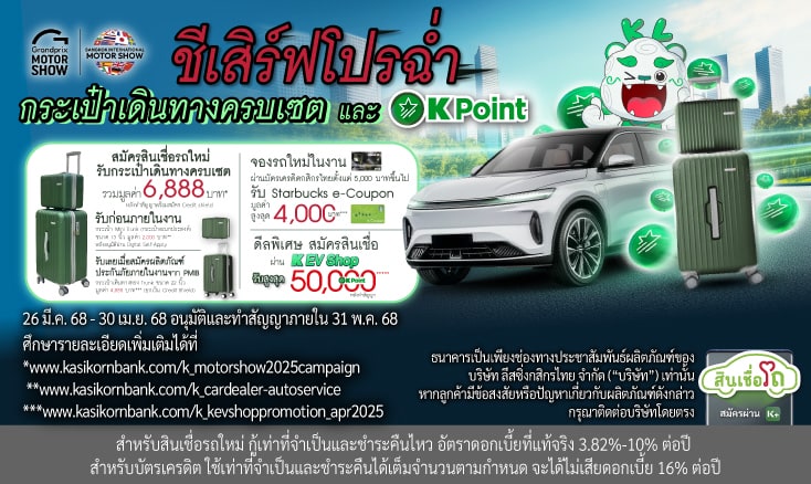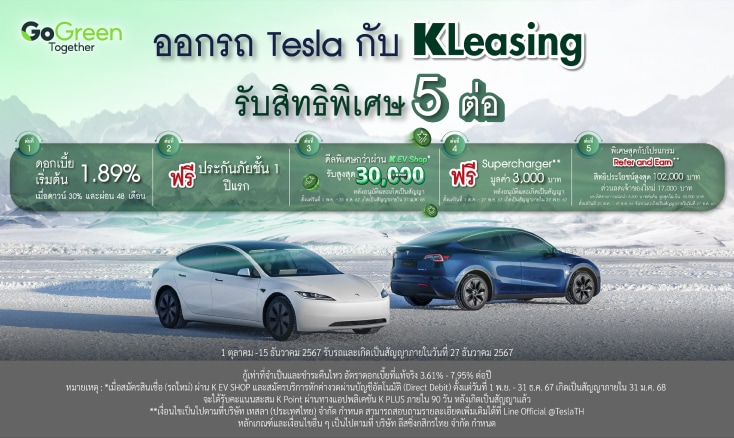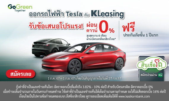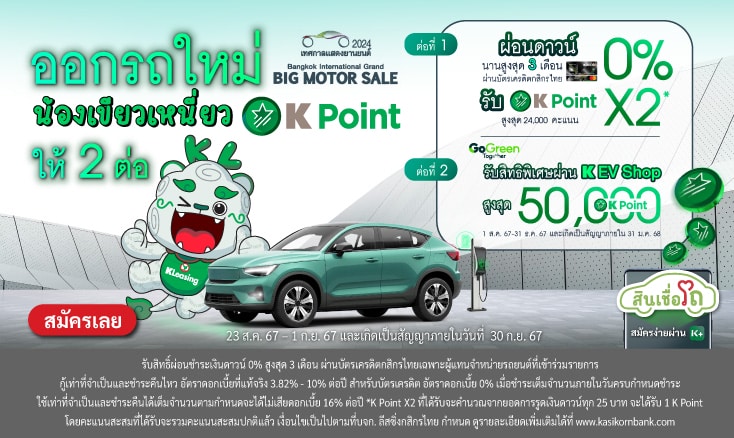 *เมื่อสมัครสินเชื่อรถใหม่ผ่านช่องทาง K EV Shop และสมัครบริการหักค่างวดผ่านบัญชีอัตโนมัติ (Direct Debit)