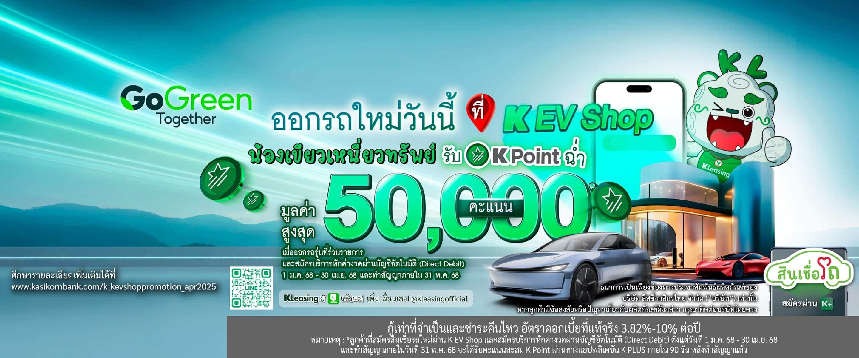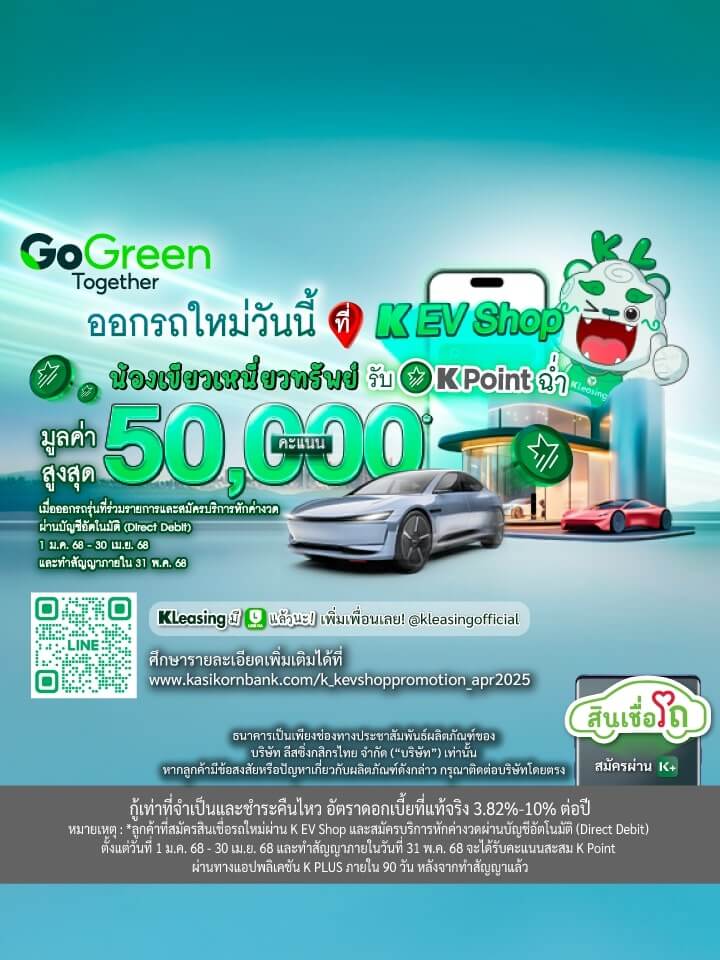 *เมื่อสมัครสินเชื่อรถใหม่ผ่านช่องทาง K EV Shop และสมัครบริการหักค่างวดผ่านบัญชีอัตโนมัติ (Direct Debit)