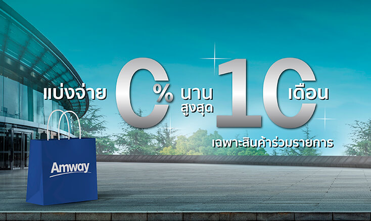 เฉพาะสินค้าที่ร่วมรายการสามารถแบ่งชำระผ่านบัตรฯ ด้วยอัตราดอกเบี้ย 0% ตั้งแต่ 4-10 เดือน สินค้าที่ร่วมรายการจะเป็นไปตามที่แอมเวย์กำหนด