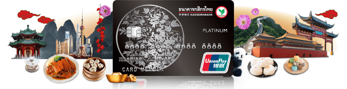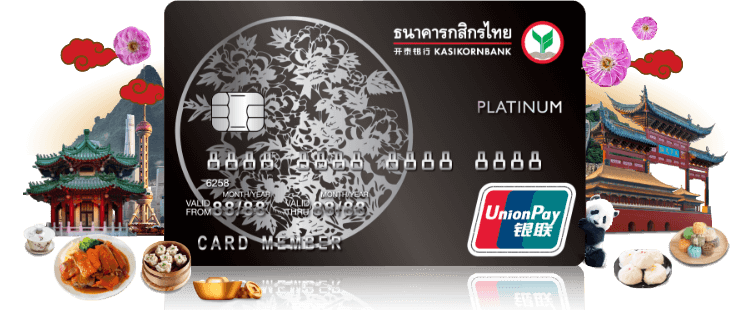 เป็นบัตรเครดิตแบบ Chip ตามมาตรฐานสากล สามารถใช้ชำระค่าสินค้าและบริการ ณ ร้านค้าที่มีเครื่องหมาย UnionPay ทั่วประเทศและทั่วโลก สามารถเบิกถอนเงินสดล่วงหน้าผ่านตู้เอทีเอ็มของธนาคารกสิกรไทยและตู้เอทีเอ็มที่มีเครื่องหมาย