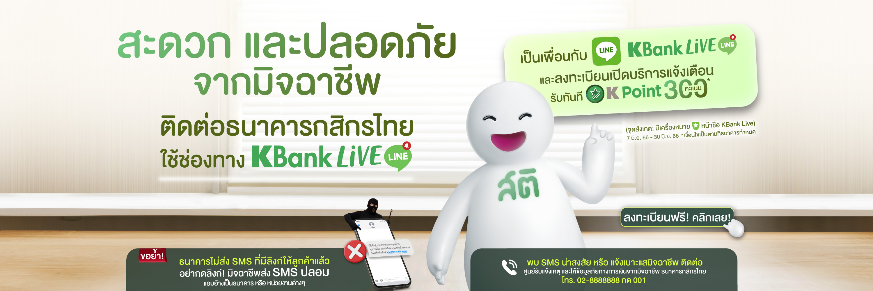 รับฟรี! 300 K Point เมื่อลงทะเบียน LINE KBank Live ครั้งแรก