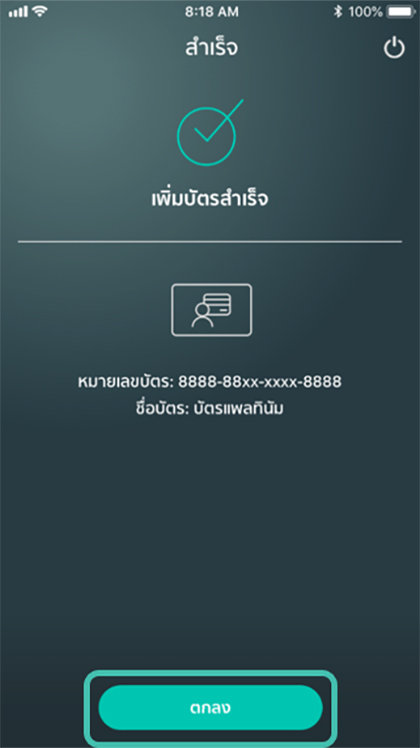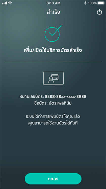 เมื่อทำการเพิ่มบัตรสำเร็จ