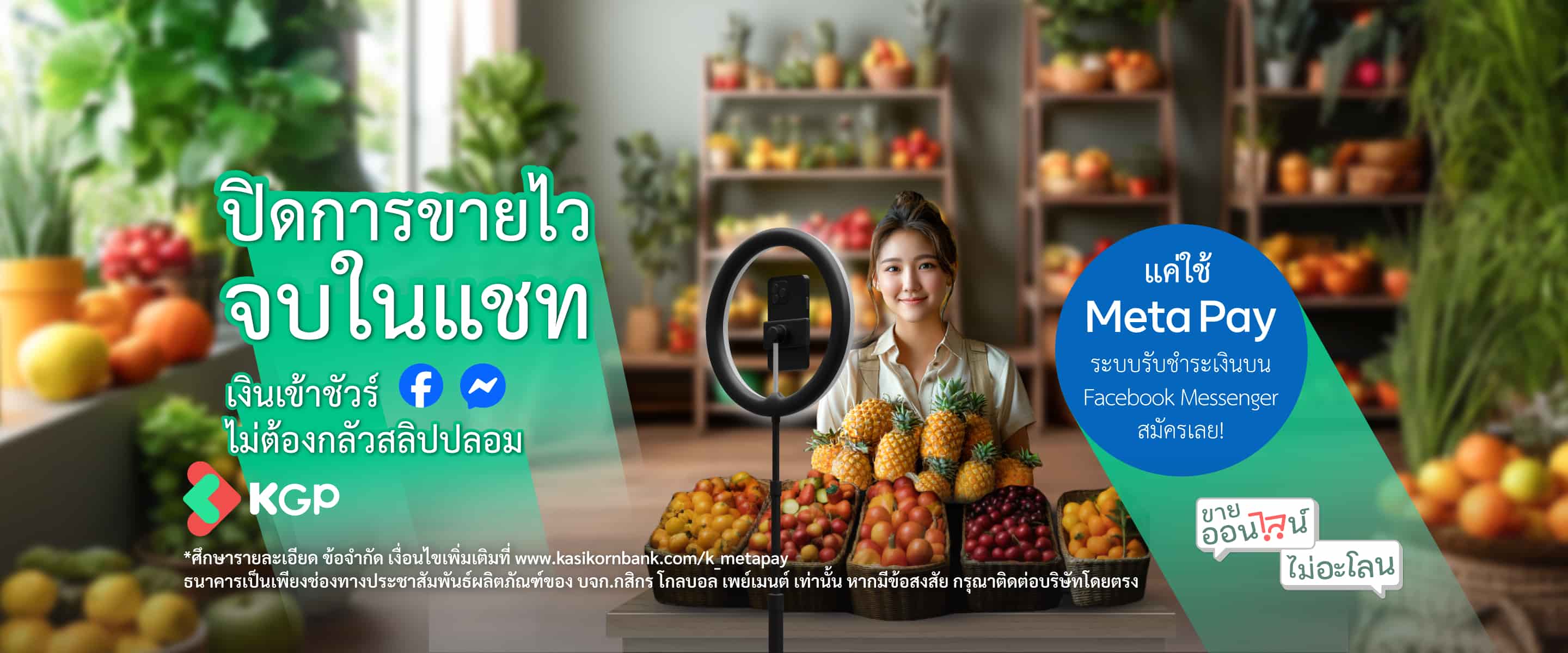 บริการการชำระเงินออนไลน์ที่ช่วยให้เพจร้านค้าบน Facebook สามารถรับชำระเงินจากลูกค้าผ่านบัตรเครดิต บัตรเดบิต (VISA, Mastercard และ JCB) โอนเงินผ่านแอปพลิเคชันของธนาคาร หรือ QR Code ได้โดยตรงในกล่องข้อความสนทนาบน Facebook Messenger โดยไม่ต้องออกจากแอปพลิเคชันเพื่อชำระเงินให้กับเพจร้านค้าได้