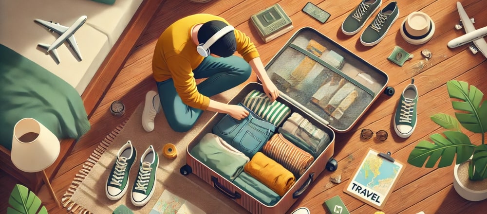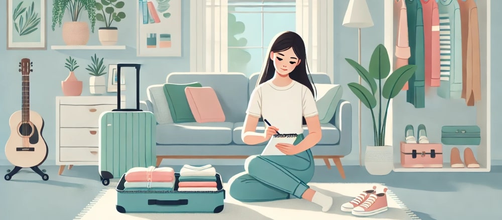 ขั้นแรกที่สำคัญที่สุดคือการวางแผนและจัดระเบียบของที่จะพกไป เริ่มจากเขียนรายการสิ่งของจำเป็นและแยกหมวดหมู่ให้ชัดเจน เช่น: เสื้อผ้าและของใช้ส่วนตัว อุปกรณ์อาบน้ำและของใช้ในห้องน้ำ กล้อง มือถือ และอุปกรณ์อิเล็กทรอนิกส์ ของกินและยาประจำตัว