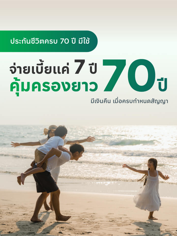 เป็นแบบประกันที่มีระยะเวลาความคุ้มครองถึงอายุครบ 70 ปี และมีระยะเวลาชำระเบี้ยประกัน 7 ปี