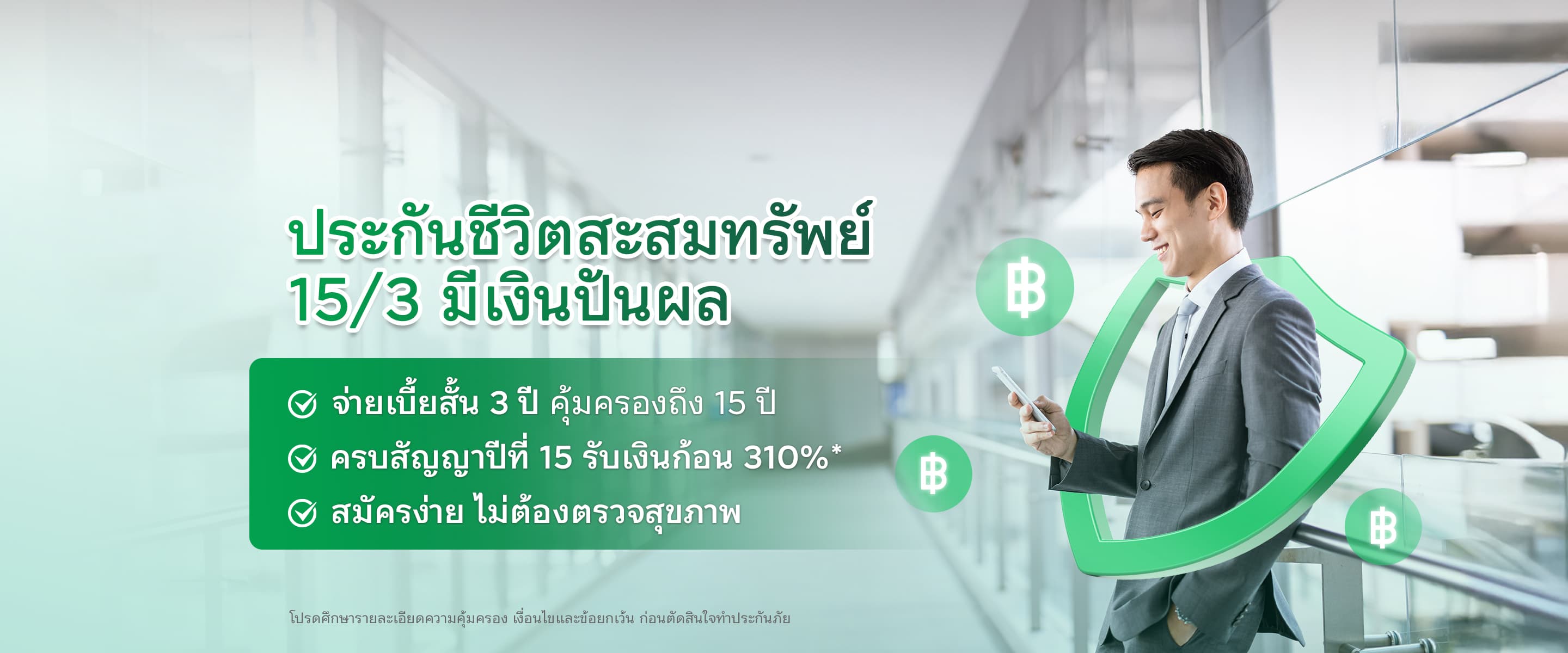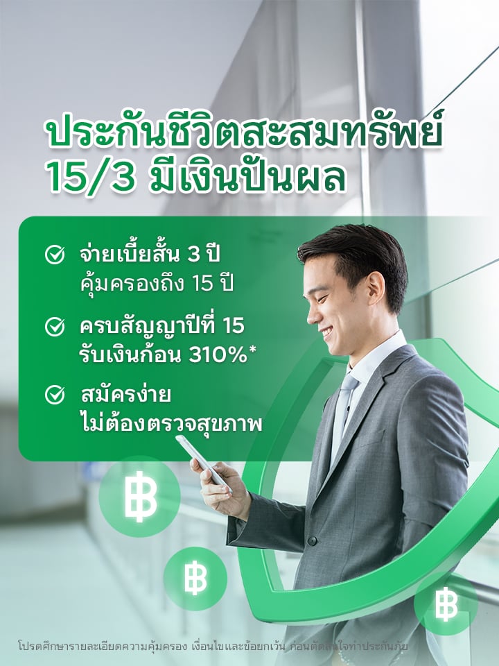 ลูกค้าที่สมัครและชำระเบี้ยประกันชีวิตออมสั้น คืนไว 11/3 ในปีแรก เบี้ยประกัน 30,000 บาทขึ้นไป