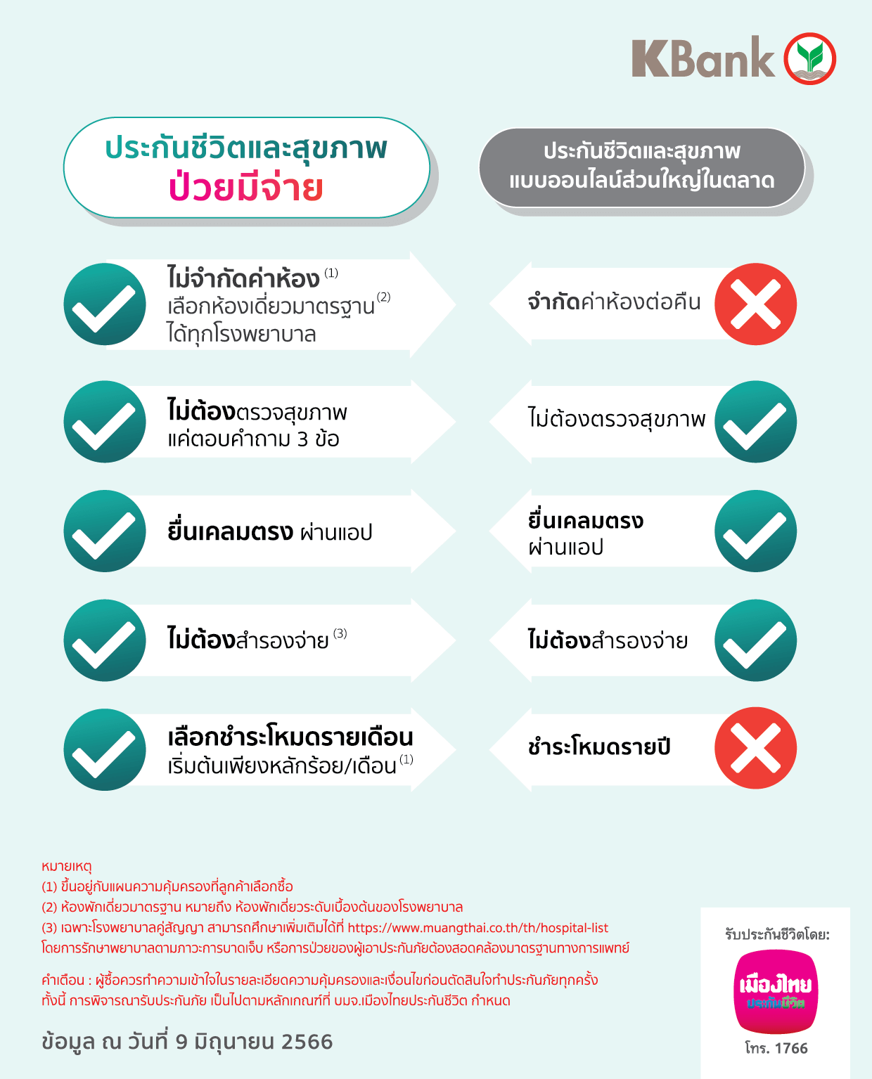 ทำประกันชีวิตและประกันสุขภาพ Kbank ป่วยมีจ่าย IPD+OPD คุ้มครองสูงสุด 50,000 บาท/ครั้ง ไม่จำกัดครั้ง/ปี ทำประกันชีวิตและประกันสุขภาพ Kbank ป่วยมีจ่าย IPD+OPD คุ้มครองสูงสุด 50,000 บาท/ครั้ง ไม่จำกัดครั้ง/ปี