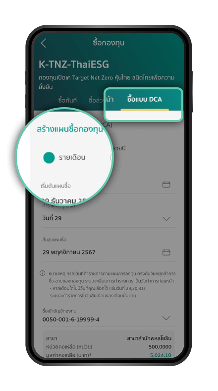 ทำรายการซื้อกองทุนครั้งแรกสำเร็จแล้ว โทรสมัครบริการ K-Saving Plan ได้ที่ K-Contact Center 02-888-8888 กด 865