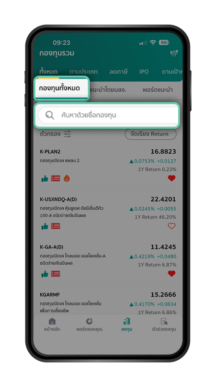 | กองทุน | นโยบายการลงทุน | ความเสี่ยง | ผลตอบแทนย้อนหลัง | ลงทุน ผ่าน K PLUS,K-My Funds |