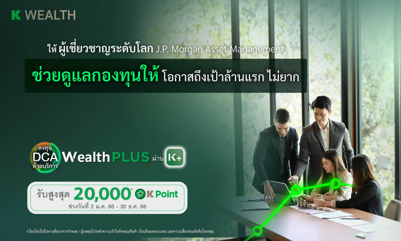 15 มี.ค. 68 - 31 ต.ค. 68เลือกตั้งแผนลงทุนรายเดือน (DCA) ในกลุ่มกองทุน FIF, Equity, Balanced และ Tax Saving (RMF/ThaiESG) รับK Point สูงสุด 20,000 คะแนน บน K PLUS ตามเงื่อนไข