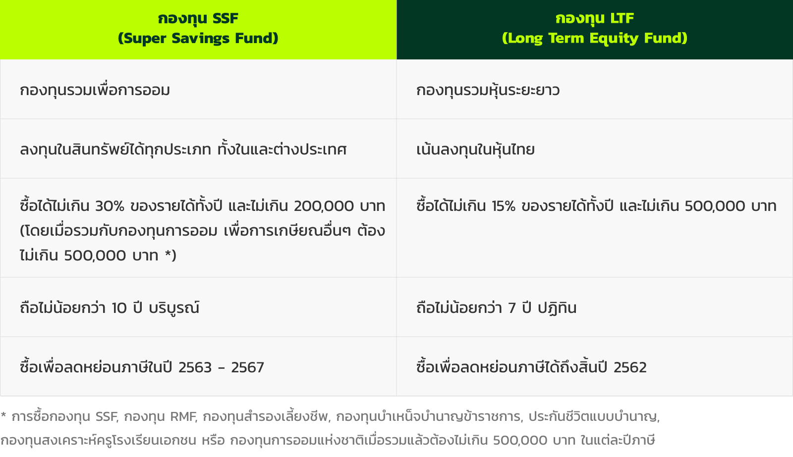 กองทุน SSF แตกต่างจากกองทุน LTF อย่างไร