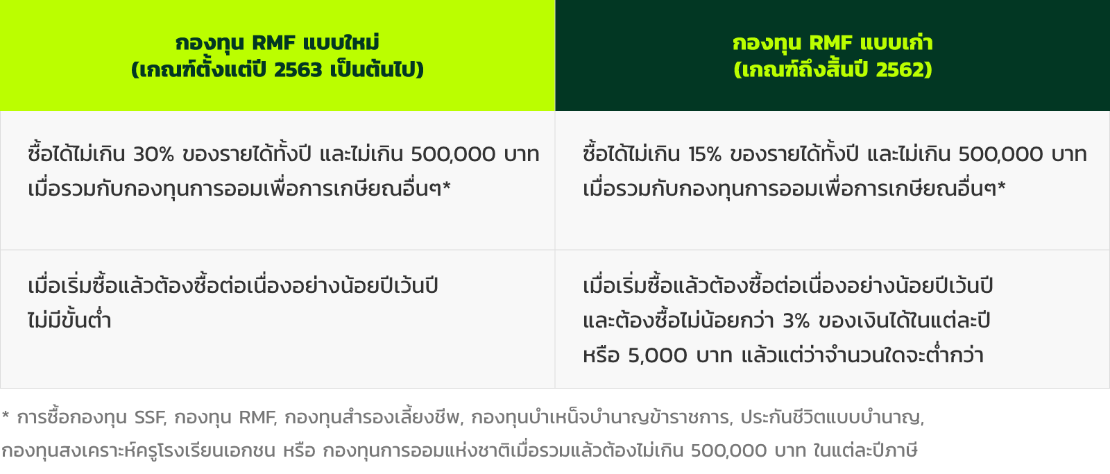 Table กองทุน RMF แบบใหม่กับแบบเก่ามีความแตกต่างกันอย่างไร