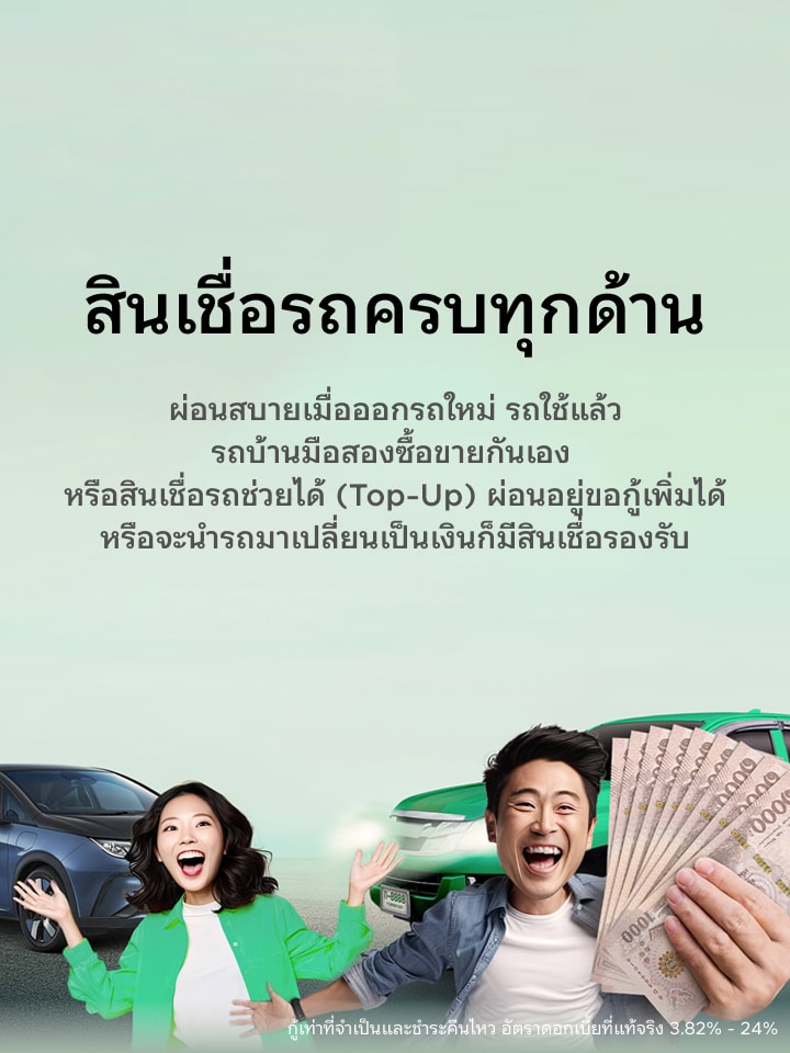 สินเชื่อรถสำหรับรถใหม่ป้ายแดง รถไฟฟ้า (EV) รู้ผลอนุมัติไว ผ่อนสบาย ดอกเบี้ยถูก ให้บริการทั่วประเทศ