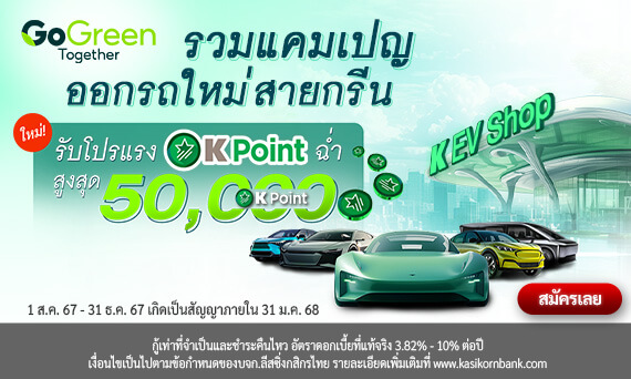 รวมดีลเด็ดจัดไฟแนนซ์รถยนต์รุ่นใหม่ ดอกเบี้ยถูก รู้ผลอนุมัติไว สมัครวันนี้รับโปรแรง! รับสูงสุด 50,000 K Point* (หลังอนุมัติสัญญาตามเงื่อนไข)