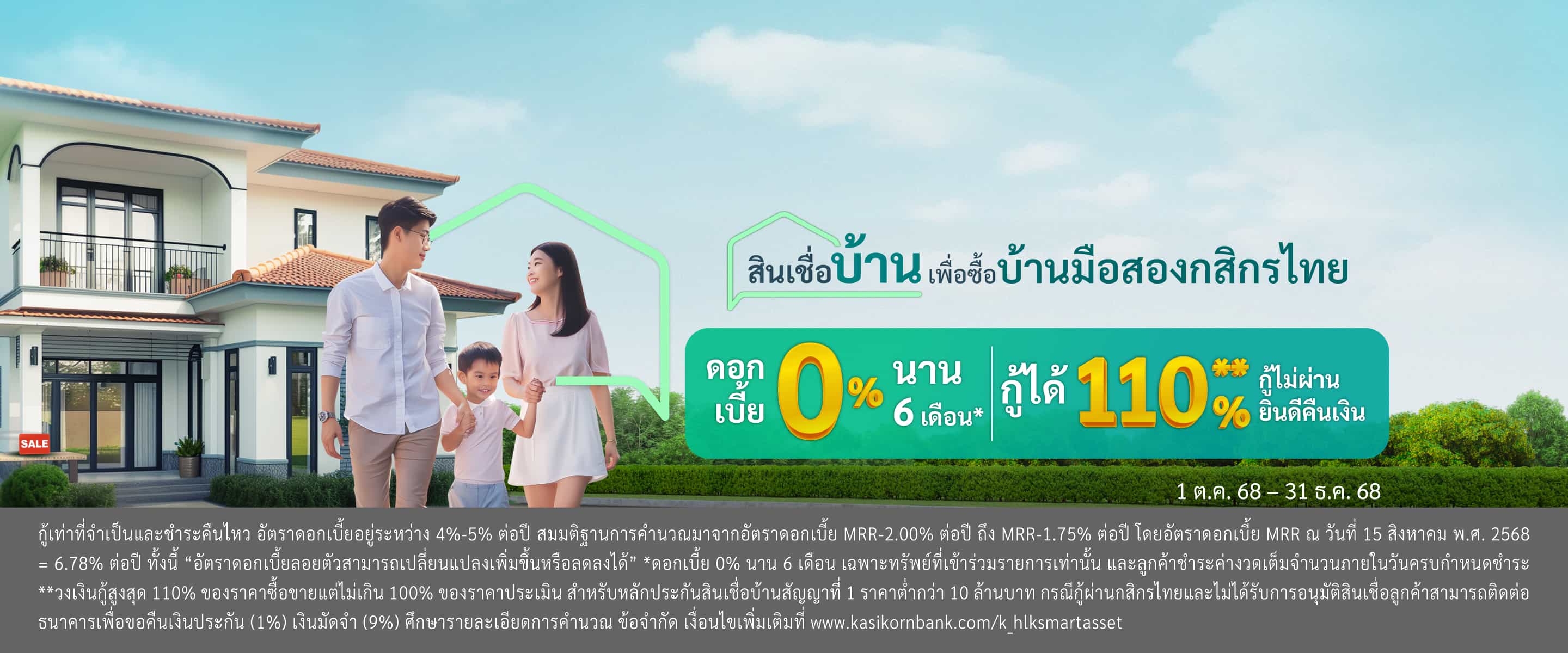 สินเชื่อบ้าน เพื่อซื้อบ้านมือสอง ทรัพย์สินรอการขายธนาคารกสิกรไทย