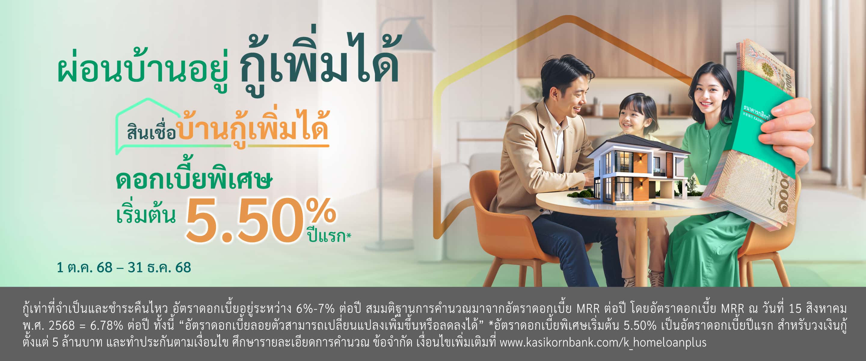 | ตั้งแต่ 5 ล้านบาทขึ้นไป | ทำประกันตามเงื่อนไข | 5.50% | 6.08% | 6.08% | MRR | 5.89% | 6.43% |