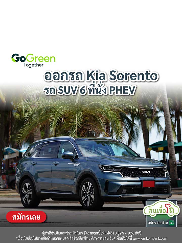สำหรับลูกค้าที่สนใจสมัครสินเชื่อ (รถใหม่) ผ่านช่องทาง K EV Shop กับ บริษัท ลีสซิ่งกสิกรไทย จำกัด ยี่ห้อ KIA รุ่น SORENTO
