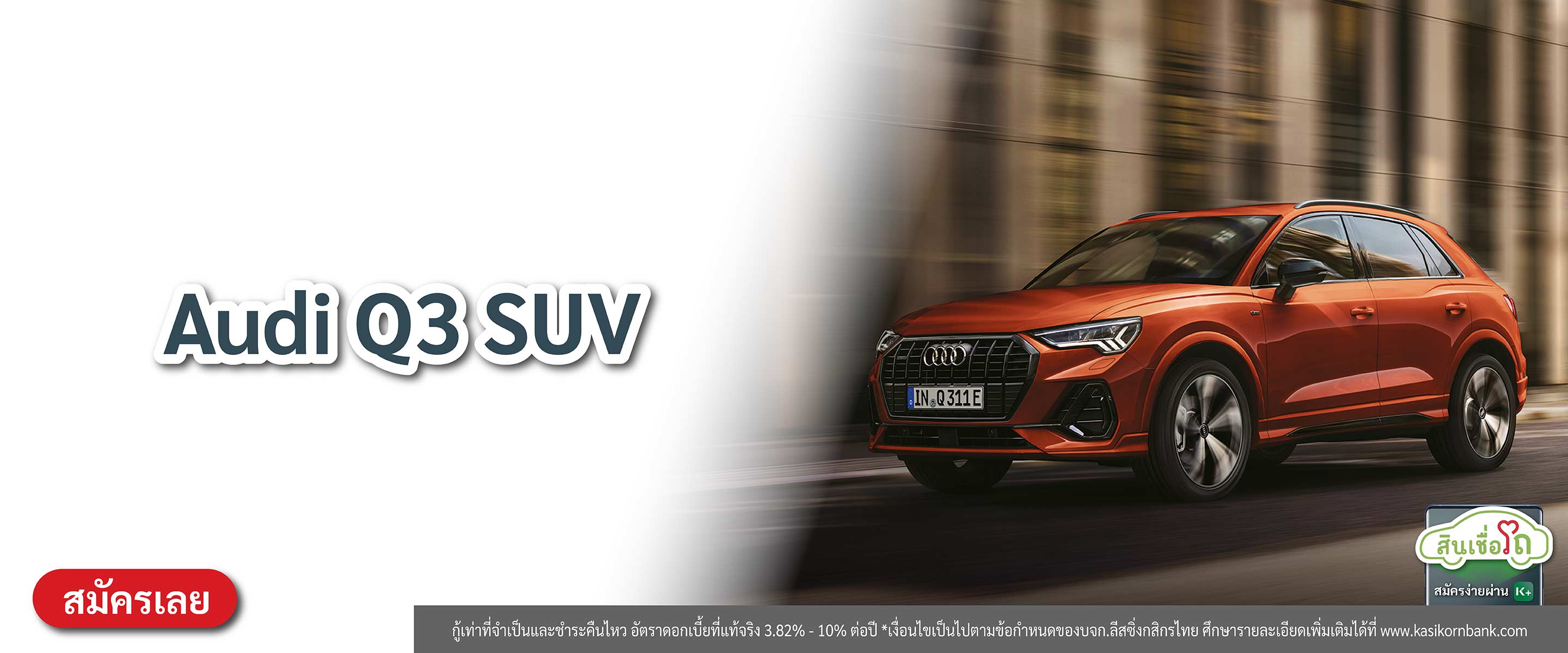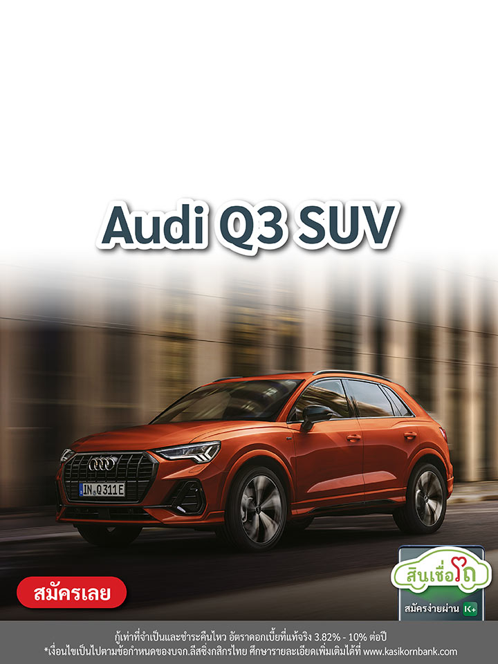 สำหรับลูกค้าที่สนใจสมัครสินเชื่อ (รถใหม่) ผ่านช่องทาง K EV Shop กับ บริษัท ลีสซิ่งกสิกรไทย จำกัด ยี่ห้อ AUDI รุ่น Q3