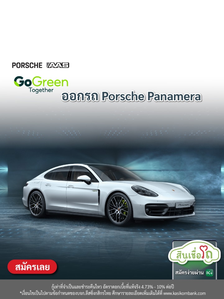 สำหรับลูกค้าที่สนใจสมัครสินเชื่อ (รถใหม่) ผ่านช่องทาง K EV Shop กับ บริษัท ลีสซิ่งกสิกรไทย จำกัด ยี่ห้อ Porsche Panamera ทุกรุ่นย่อย
