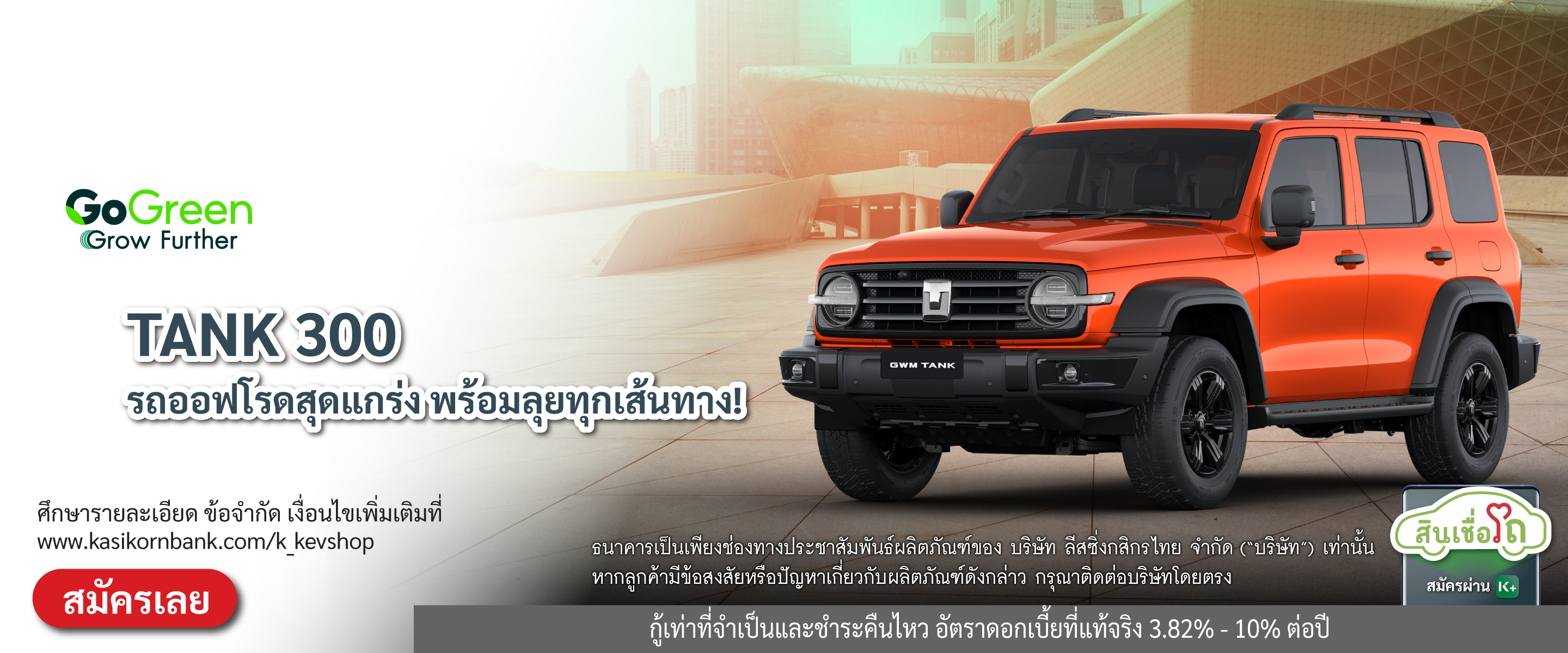 สำหรับลูกค้าที่สนใจสมัครสินเชื่อ (รถใหม่) ผ่านช่องทาง K EV Shop กับ บริษัท ลีสซิ่งกสิกรไทย จำกัด ยี่ห้อ TANK รุ่น 300