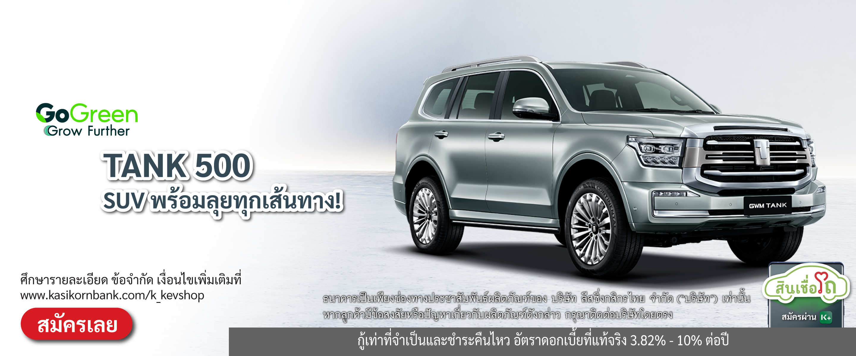 สำหรับลูกค้าที่สนใจสมัครสินเชื่อ (รถใหม่) ผ่านช่องทาง K EV Shop กับ บริษัท ลีสซิ่งกสิกรไทย จำกัด ยี่ห้อ TANK รุ่น 500