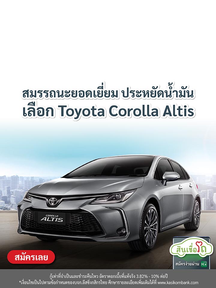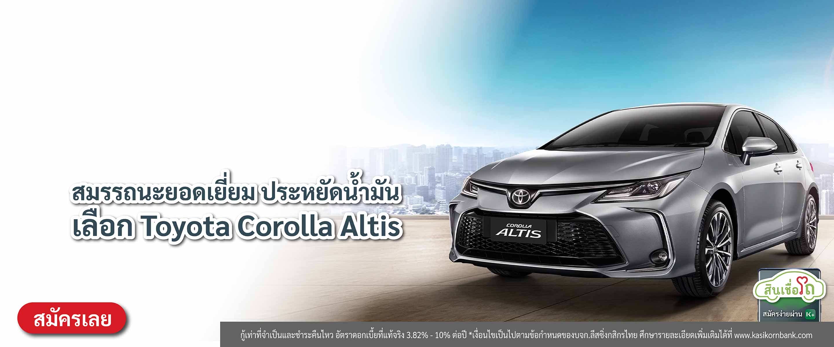 สำหรับลูกค้าที่สนใจสมัครสินเชื่อ (รถใหม่) ผ่านช่องทาง K EV Shop กับ บริษัท ลีสซิ่งกสิกรไทย จำกัด ยี่ห้อ TOYOTA รุ่น Corolla Altis