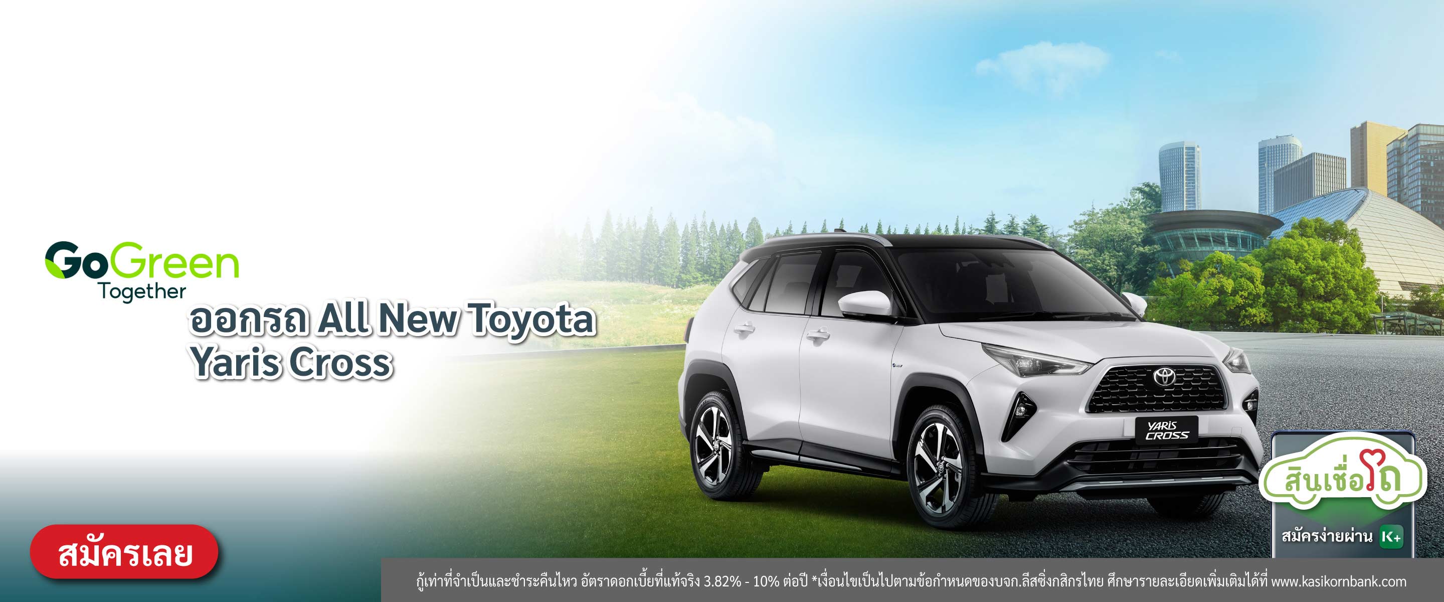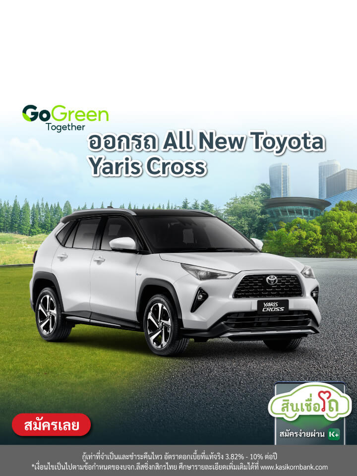 สำหรับลูกค้าที่สนใจสมัครสินเชื่อ (รถใหม่) ผ่านช่องทาง K EV Shop กับ บริษัท ลีสซิ่งกสิกรไทย จำกัด ยี่ห้อ TOYOTA รุ่น Yaris cross Hybrid