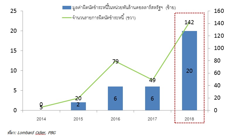 หลังจากระดับการผิดนัดชำระหนี้ในปี 2018 สูงสุดเป็นประวัติการณ์ที่จำนวน 1.2 แสนล้านหยวน หรือคิดเป็น 2 หมื่นล้านดอลลาร์สหรัฐฯ จาก 142 รายการ ซึ่งสูงกว่า 4 เท่าของตัวเลขในปี 2017 เลยทีเดียว โดยบริษัทกลุ่มพลังงานได้รับผลกระทบสูงสุด