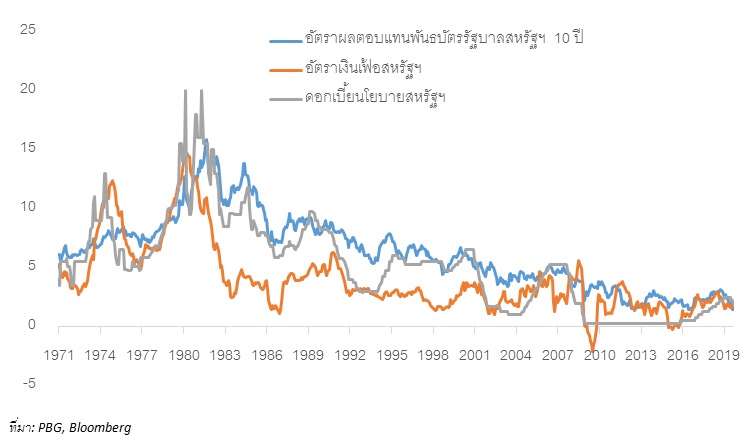 เพื่อตอบคำถามนี้ ควรแยกเหตุการณ์ที่เกิดขึ้นออกเป็น 2 ระยะคือ ย้อนหลังกลับไปยาวๆ และช่วงที่เพิ่งเกิดขึ้น หากย้อนไป 30 ปี ที่ผ่านมา โลกมีการเปลี่ยนแปลงทางด้านโครงสร้างอย่างมีนัยสำคัญ ส่งผลกระทบโดยตรงต่อวิถีการดำเนินชีวิตของผู้คน ไปจนถึงลักษณะและพฤติกรรมของตลาดทุน ซึ่งรวมถึงผลตอบแทนพันธบัตรด้วย อย่างที่ทราบกันดี ผลตอบแทนพันธบัตรจะถูกขับเคลื่อนหลักๆ จากแนวโน้มอัตราดอกเบี้ยนโยบาย โดยเฉพาะดอกเบี้ยสหรัฐฯ และคาดการณ์อัตราเงินเฟ้อในอนาคต ซึ่งเทรนโลกาภิวัฒน์และความก้าวหน้าของเทคโนโลยีทำให้เกิดการซื้อขายสินค้าจากผู้ผลิตที่มีประสิทธิภาพสูง ต้นทุนต่ำ ราคาถูก ก็มีส่วนสำคัญในการกดอัตราเงินเฟ้อโลกให้ลดลงต่อเนื่อง ทั้ง 2 ปัจจัยจึงร่วมด้วยช่วยกันในการเปลี่ยนโครงสร้างระดับอัตราดอกเบี้ยปกติของโลกให้ต่ำลง