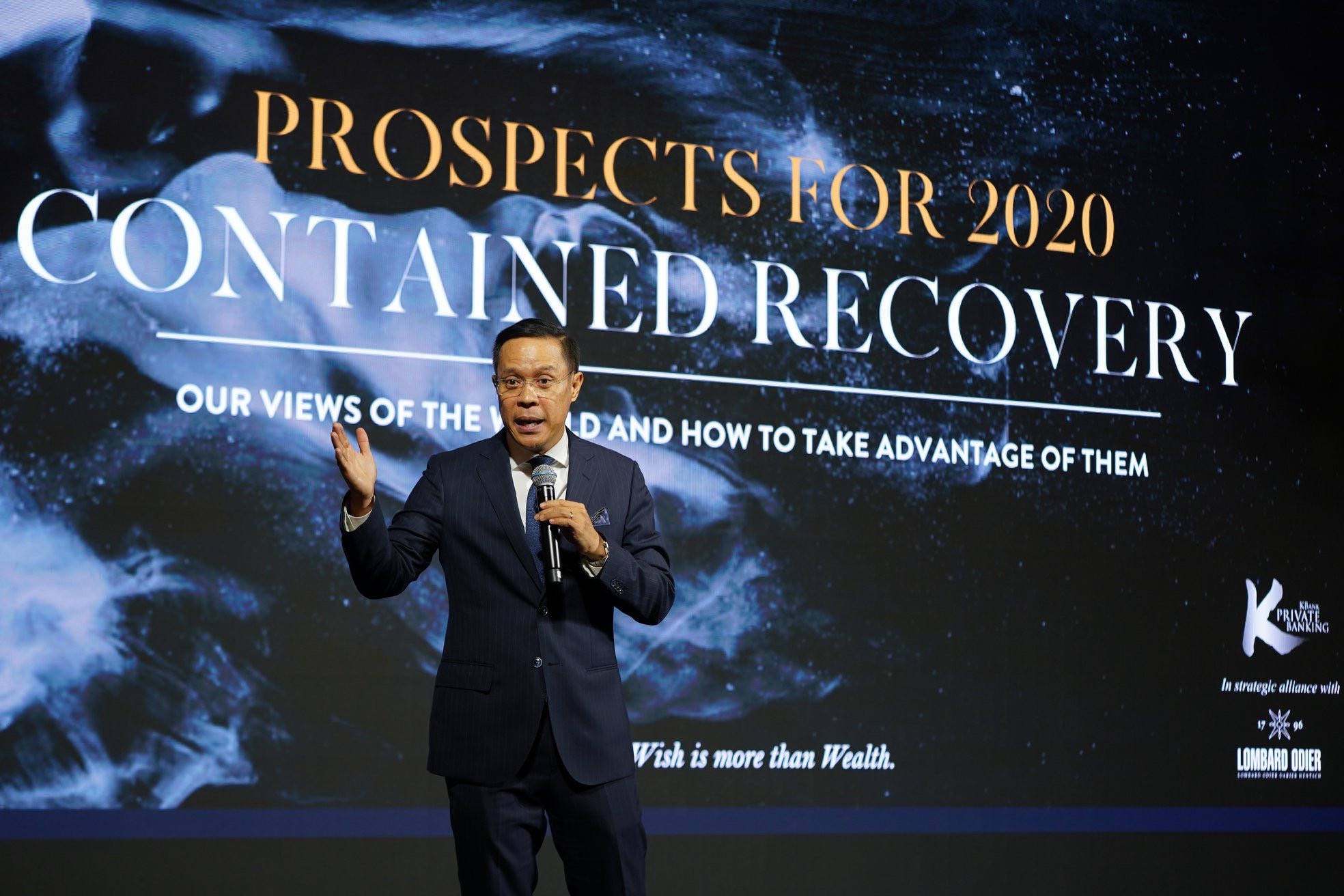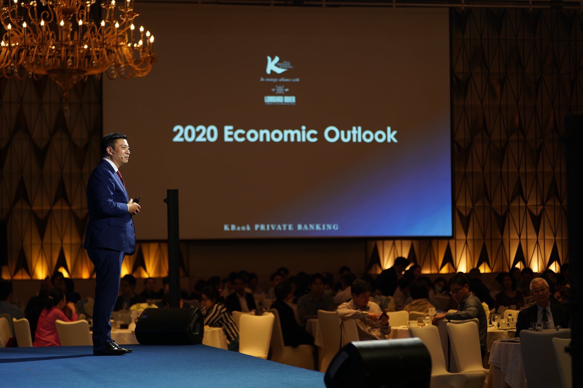 KBank PRIVATE BANKING จัดงานสัมมนา Prospects for 2020 - Contained Recovery Our Views of the World and How to Take Advantage of Them “โอกาสและกลยุทธ์ลงทุนในช่วงเศรษฐกิจฟื้นตัวอยู่ในกรอบ” โดยมีวิทยากรพิเศษ รศ. ดร.ปณิธาน วัฒนายากร อาจารย์ประจำภาควิชาความสัมพันธ์ระหว่างประเทศ คณะรัฐศาสตร์ จุฬาลงกรณ์มหาวิทยาลัย ผู้เชี่ยวชาญด้านภูมิรัฐศาสตร์และความมั่นคงระหว่างประเทศ ร่วมด้วย คุณจิรวัฒน์ สุภรณ์ไพบูลย์ Private Banking Group Head ดร. ตรีพล ภูมิวสนะ Managing Director, Private Banking Business Head, Private Banking Group และ คุณ ศิริพร สุวรรณการ Managing Director, Financial Advisory Head, Private Banking Group ธนาคารกสิกรไทย ร่วมสัมมนาถึงแนวโน้มเศรษฐกิจ ความมั่นคงระหว่างประเทศ และสังคม ซึ่งมีผลกระทบต่อการลงทุนแก่ลูกค้าไพรเวทแบงก์ของธนาคาร ณ โรงแรมสยามเคมปินสกี้