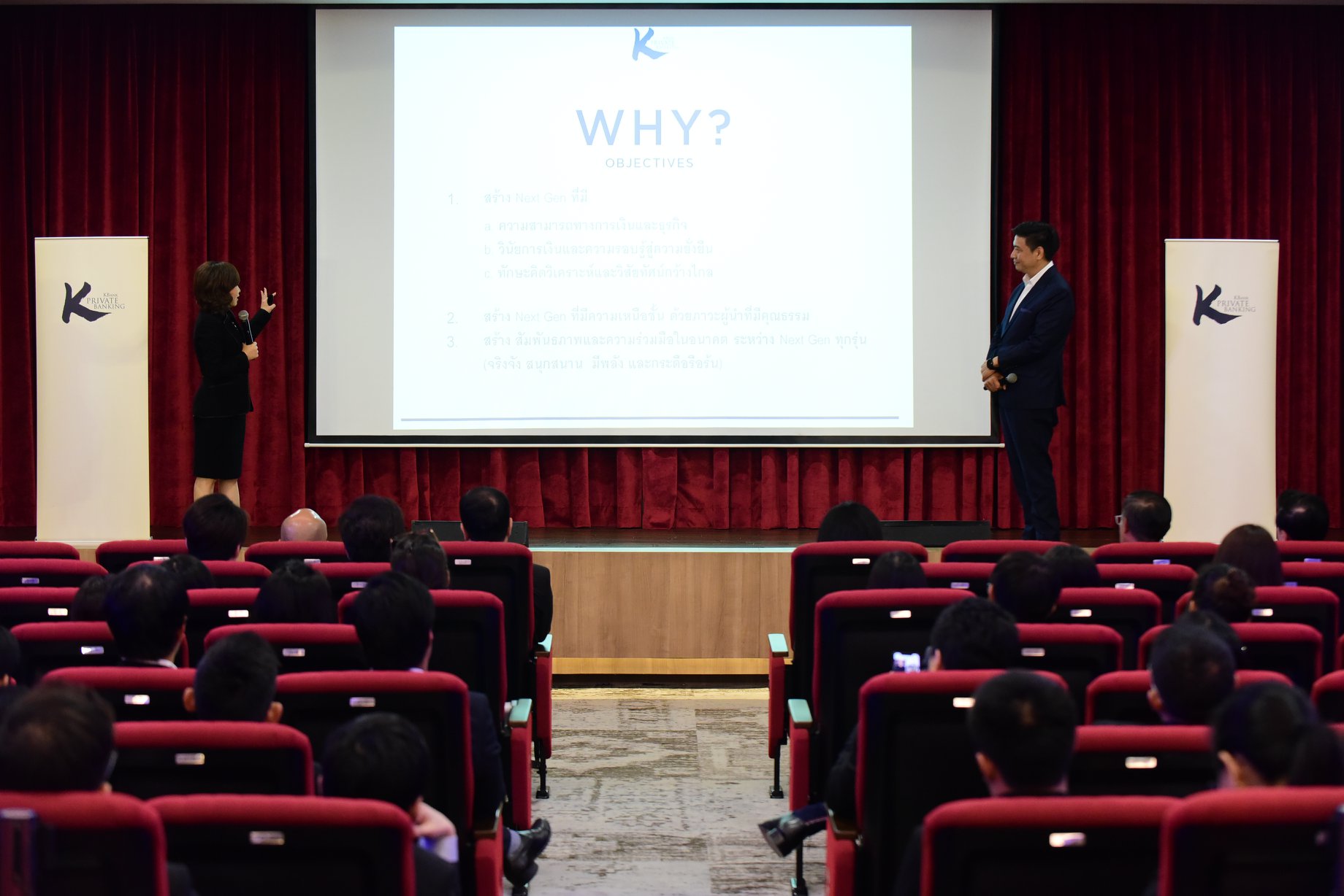KBank Private Banking เปิดหลักสูตร KBank Private Banking Academy: Next Generation 2018 ซึ่งปีนี้จัดขึ้นเป็นปีที่ 4 ติดต่อกัน เพื่อให้ทายาทกลุ่มลูกค้าของธนาคารฯ ได้เรียนรู้ถึงหลักการวิเคราะห์การลงทุนในสินทรัพย์ทางการเงินประเภทต่างๆ ตลอดจนการจัดสรรเงินลงทุน (Asset Allocation) ให้มีการบริหารความเสี่ยงได้อย่างเป็นระบบ รวมไปถึงการเสริมความรู้เรื่องนวัตกรรมเปลี่ยนแปลงโลกหรือ Disruption ในการปรับเปลี่ยนองค์กรให้ทันต่อความก้าวหน้าทางเทคโนโลยี และการสร้าง Mindset ต่อการเปลี่ยนแปลงโลกธุรกิจ (Transforming) เพื่อรองรับการแข่งขันในอนาคต โดยหลักสูตรนี้ออกแบบให้ผู้เข้าร่วมได้เรียนรู้ วิเคราะห์การลงทุน และบริหารสินทรัพย์ในหลากหลายมิติ ผ่านกิจกรรมแบบ 360 องศา เพื่อสร้างผู้บริหารคุณภาพที่สามารถสานต่อกิจการครอบครัวได้อย่างยั่งยืน หรือริเริ่มธุรกิจของตัวเอง ณ ธนาคารกสิกรไทย อาคารพหลโยธิน