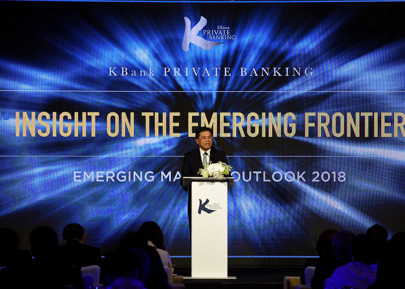 ธุรกิจบริการไพรเวทแบงค์ ธนาคารกสิกรไทย จัดงานสัมมนา Insights on the Emerging Frontier & Emerging Market Outlook 2018 โดยมี ดร.ศุภชัย พานิชภักดิ์ อดีตเลขาธิการ ที่ประชุมสหประชาชาติว่าด้วยการค้าและการพัฒนา หรือ อังค์ถัด (UNCTAD) และอดีตผู้อำนวยการใหญ่ องค์การการค้าโลก (WTO) และ ดร.มาร์ค โมเบียส ประธานกรรมการบริหาร เทมเพิลตัน อีเมอร์จิ้ง มาร์เก็ตส์ กรุ๊ป สิงคโปร์ ร่วมบรรยายเพื่อให้ความรู้และทิศทางด้านการลงทุนในตลาดทุนเกิดใหม่แก่ลูกค้าไพรเวทแบงค์ ธนาคารกสิกรไทย