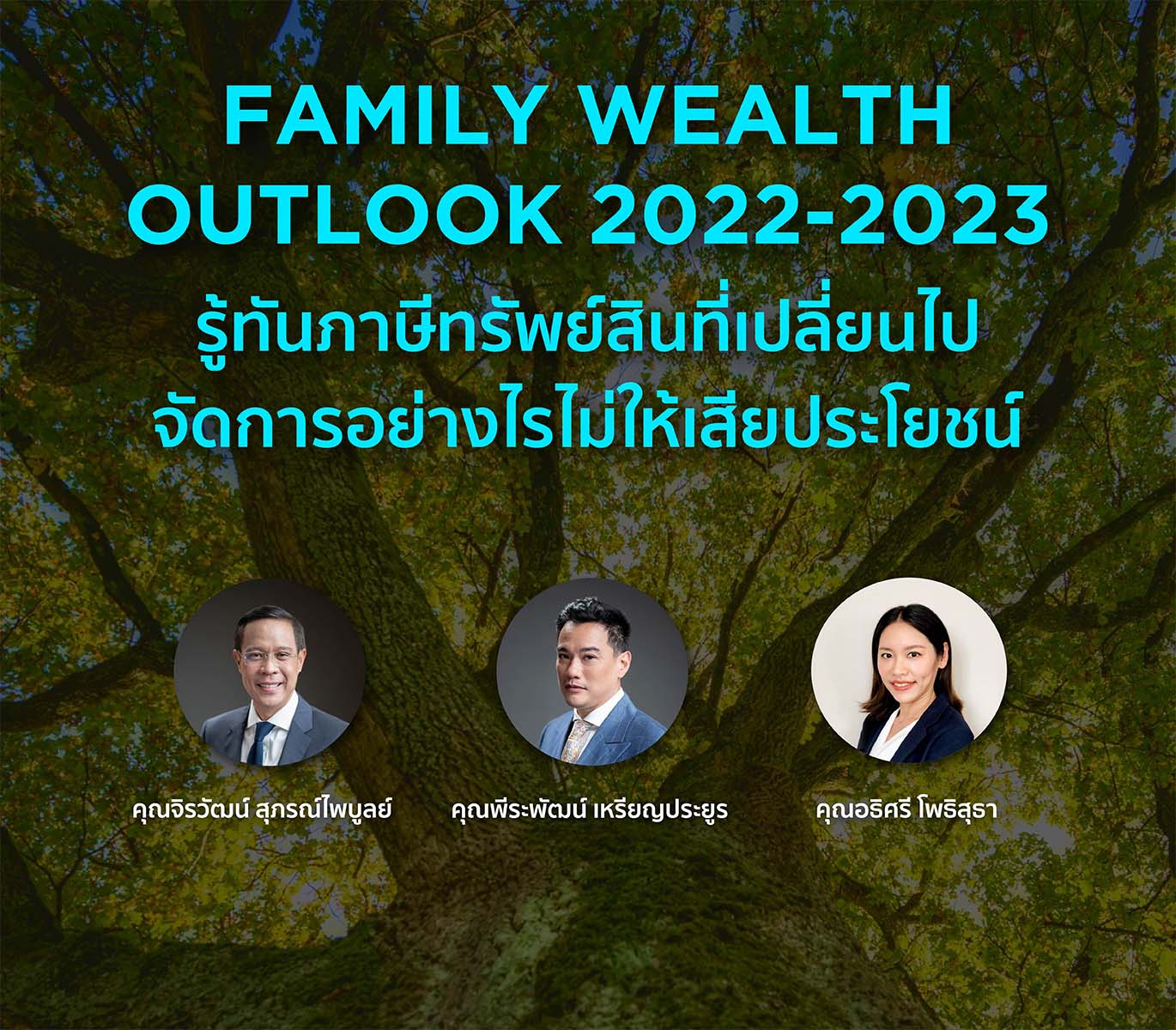 KBank Private Banking จัดงานสัมมนาออนไลน์สุดเอ็กซ์คลูซีฟ ในหัวข้อ 2022-2023 Family Wealth Outlook: รู้ทันภาษีทรัพย์สินที่เปลี่ยนไป จัดการอย่างไรไม่ให้เสียประโยชน์ เพื่ออัพเดทข้อมูลภาษีต่างๆ แบบอัพเดตล่าสุด ไม่ว่าจะเป็นก การเตรียมความพร้อมกับการแลกเปลี่ยนข้อมูลทางภาษีระหว่างประเทศ การรับมือกับการเปลี่ยนแปลงของภาษีทรัพย์สินและกฎหมายในประเทศไทย ที่ส่งผลกระทบต่อการบริหารจัดการความมั่งคั่งของลูกค้าบุคคลสินทรัพย์สูง พร้อมแนะนำแนวทางการบริหารจัดการสินทรัพย์เพื่อให้การส่งต่อทรัพย์สินของครอบครัวเป็นไปอย่างมีประสิทธิภาพ