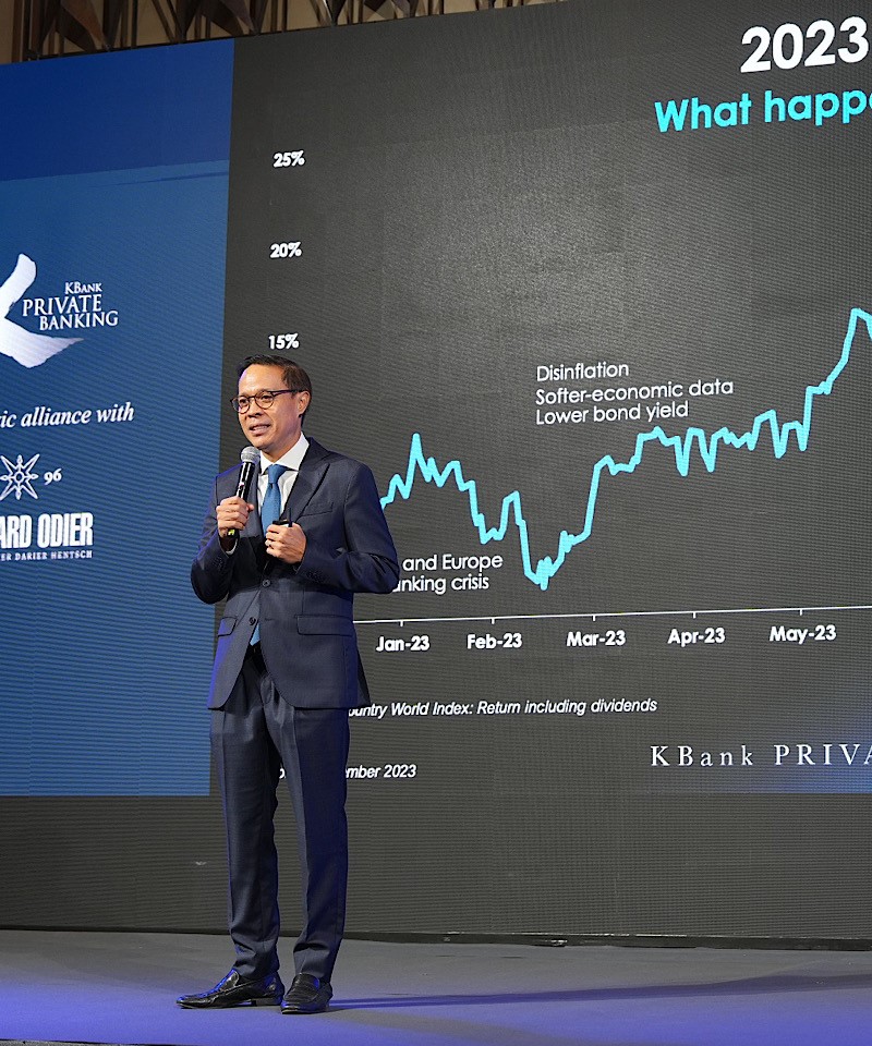 KBank Private Banking จัดงานเสวนา การลงทุนเพื่อความยั่งยืน: “ทางรอด" ไม่ใช่ “ทางเลือก" (Investment for Sustainability: Transition or Extinction) เพื่อส่งเสริมความตระหนักรู้เกี่ยวกับแนวปฏิบัติและประโยชน์ที่จับต้องได้จริงของการลงทุนเพื่อความยั่งยืน และชี้ให้เห็นถึงบทบาทของภาคธุรกิจและนักลงทุนที่สามารถร่วมกันผลักดันและขับเคลื่อนไปสู่การลงทุนเพื่อความยั่งยืนได้จริงผ่านองค์ความรู้ระดับโลกจากพันธมิตร Lombard Odier พร้อมด้วยตัวแทนองค์กรธุรกิจชั้นนำของไทยอย่าง พีทีที โกลบอล เคมิคอล (PTT GC) ที่ประสบความสำเร็จในการปรับการดำเนินธุรกิจตามแนวการปฏิวัติสู่ Net-Zero