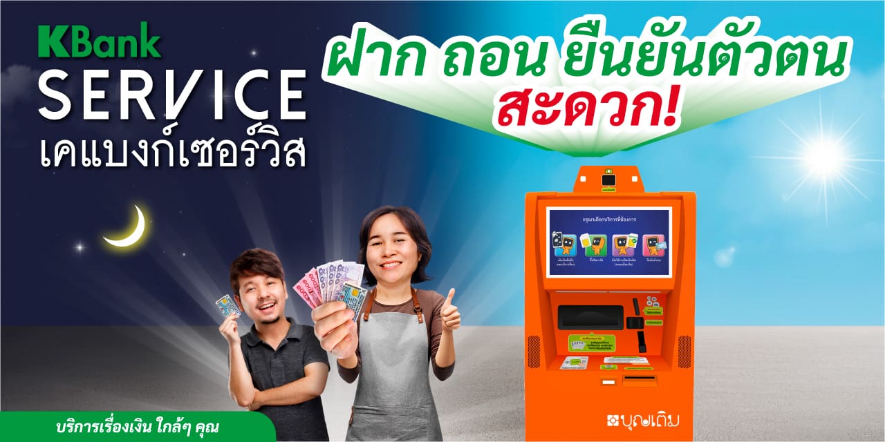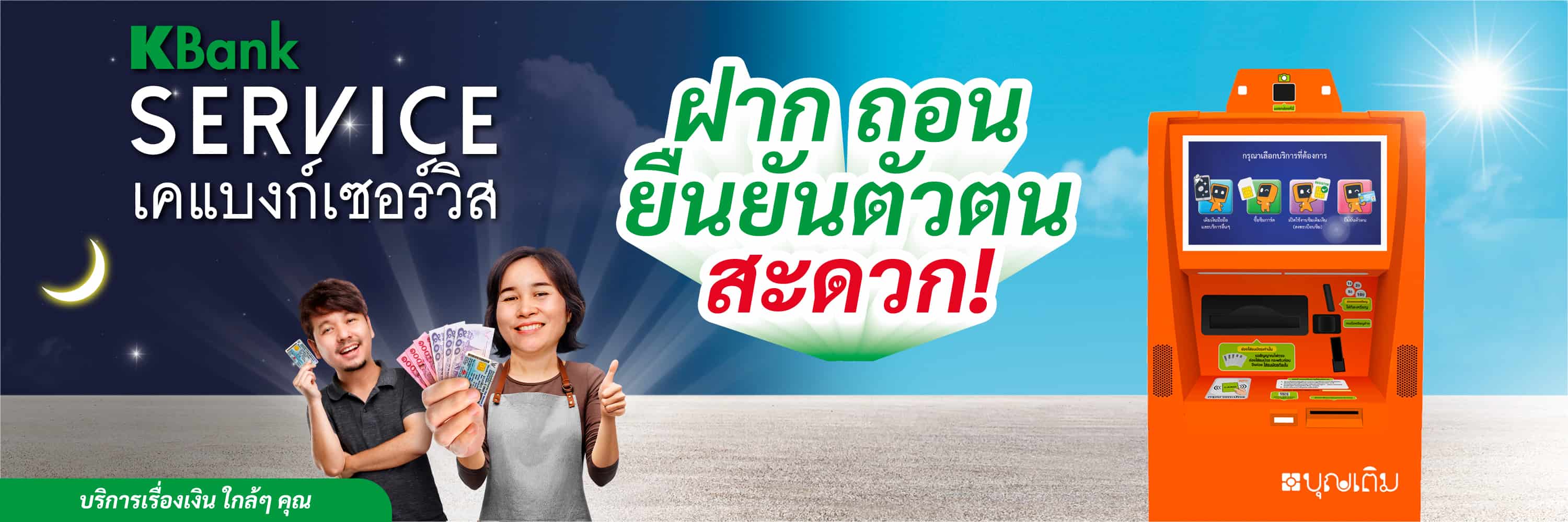 บริการทำธุรกรรมทางการเงินผ่านตู้บุญเติม เพิ่มความสะดวกในการทำธุรกรรมทางเงินสดให้กับลูกค้าของธนาคารให้บริการฝาก / โอนเงิน ถอนเงินสดเข้าบัญชีกสิกรไทย