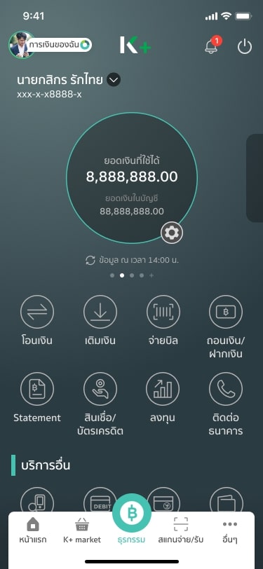 เข้าแอป K PLUS เลือก "ธุรกรรม"