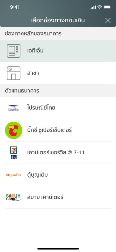 - ฝากและถอนเงินได้ที่ทุกเคาน์เตอร์แคชเชียร์ บิ๊กซีซูเปอร์เซ็นเตอร์ บิ๊กซีเอ๊กซ์ตร้า บิ๊กซีมาร์เก็ต บิ๊กซีฟู้ดเพลส และมินิบิ๊กซี (เฉพาะสาขาที่ร่วมรายการ)