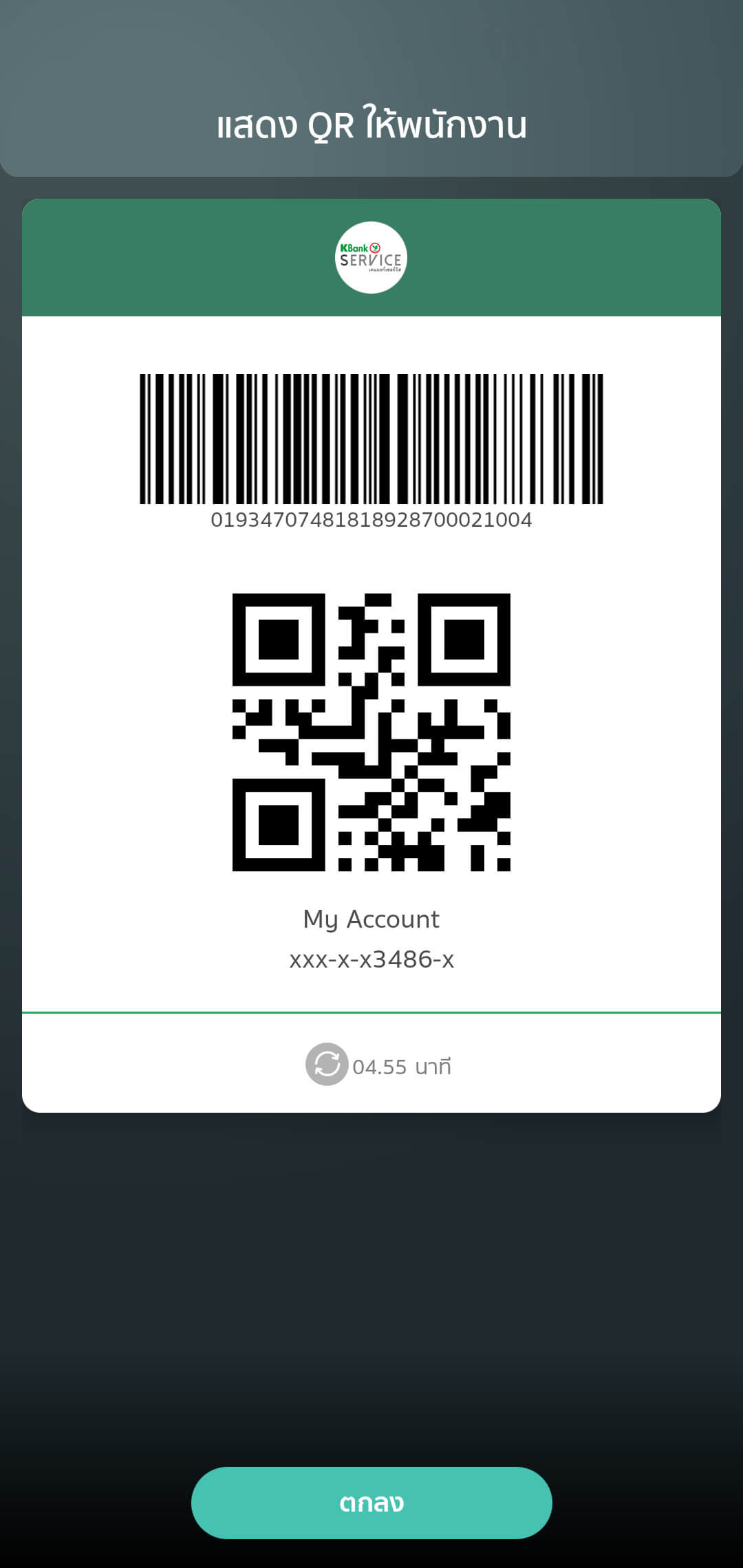 กดปุ่ม "แสดง QR / บาร์โค้ด" ให้พนักงานเพื่อถอนเงิน