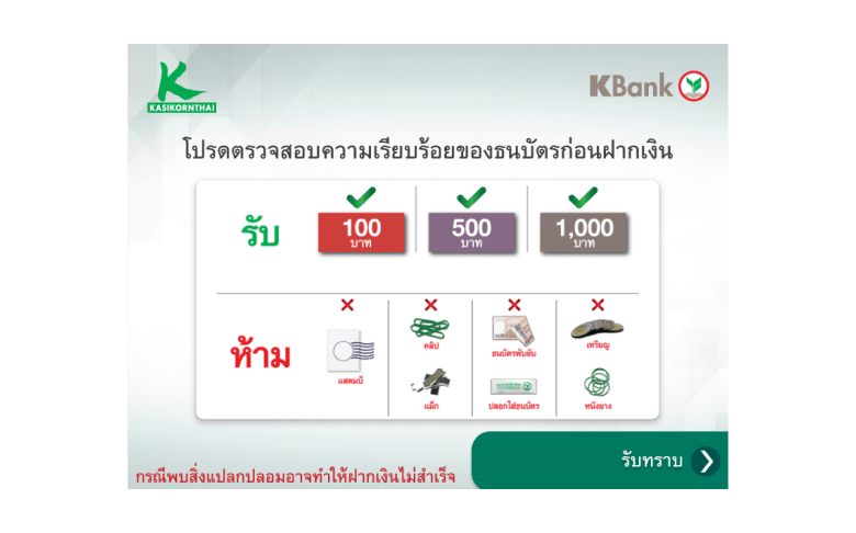 - รองรับเฉพาะธนบัตร 100 500 และ 1,000 บาท