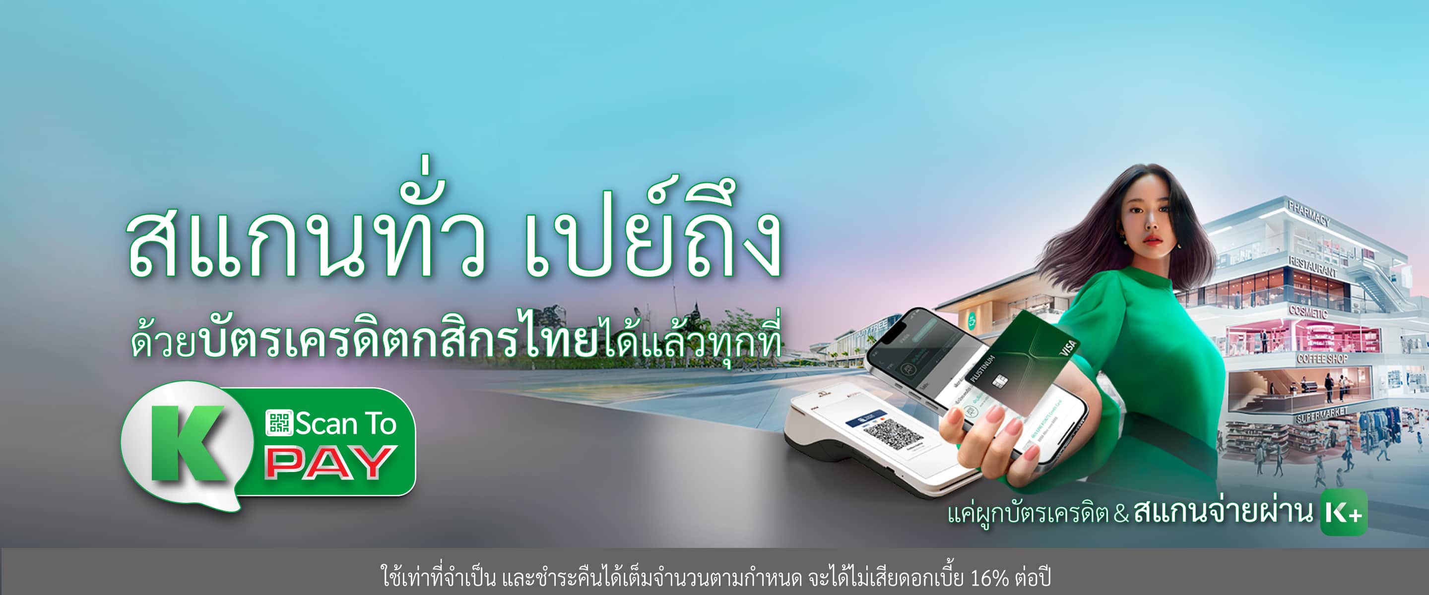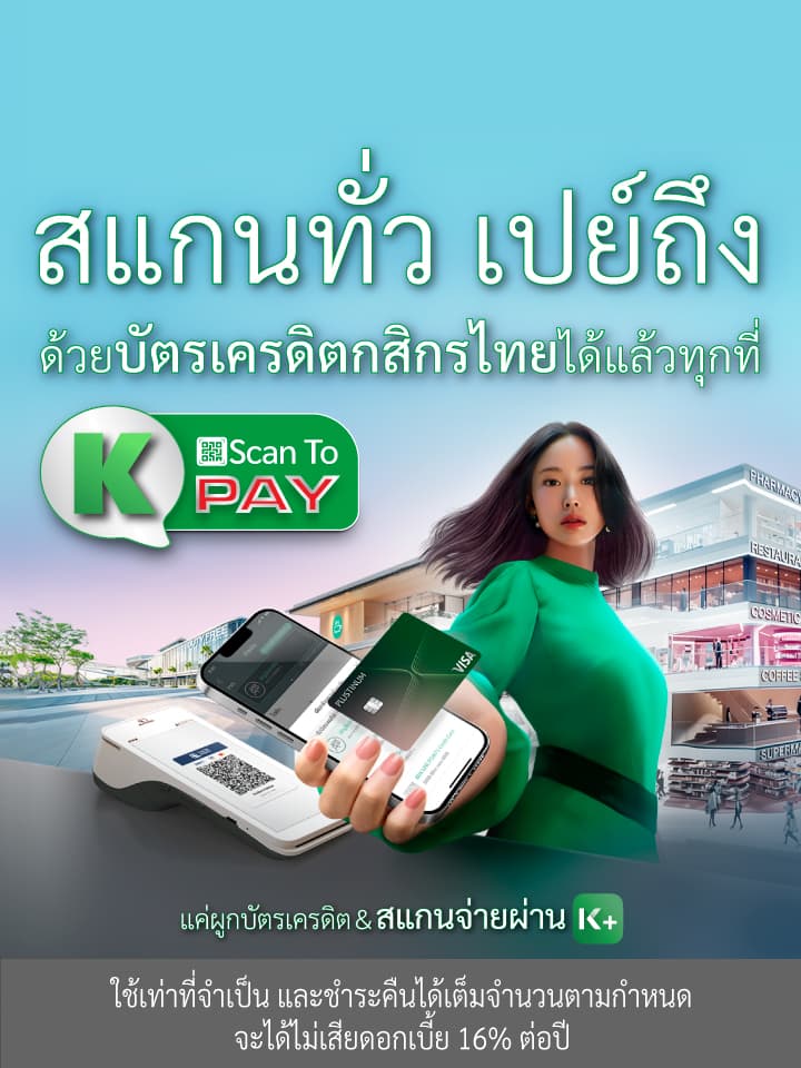 K Scan to Pay QR Credit Card สามารถใช้งานได้แค่ประเทศไทยเท่านั้น ยังไม่รองรับการใช้งานต่างประเทศ
