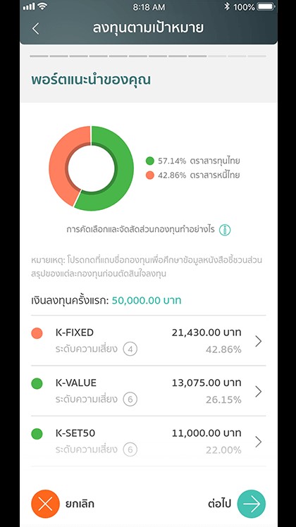 ลงทุนเพื่อเพิ่มความมั่นคั่งและมั่งคงได้ง่ายกว่าเดิม ด้วย “Wealth PLUS” ฟีเจอร์ใหม่บน K PLUS ที่จะมาช่วยจัดพอร์ตการลงทุนส่วนตัวให้เหมาะกับเป้าหมายและระดับความเสี่ยงที่รับได้ของแต่ละคน ทั้งยังคอยติดตามและปรับพอร์ตการลงทุนให้อย่างสม่ำเสมอตามภาวะตลาด กระจายความเสี่ยง ให้ถึงเป้าหมายได้ง่ายขึ้น เริ่มใช้งานง่าย ๆ เพียงมี K PLUS ไม่ต้องไปสาขา และไม่ต้องใช้เอกสารเพิ่มเติม ใช้ฟรี ไม่มีค่าธรรมเนียม