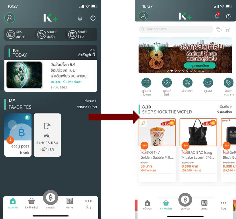 แลกคะแนนบัตรเครดิตของคุณเป็นสินค้าต่าง ๆ ที่คุณต้องการได้ง่าย ๆ บน K+ Market ผ่านแอปพลิเคชั่น K PLUS