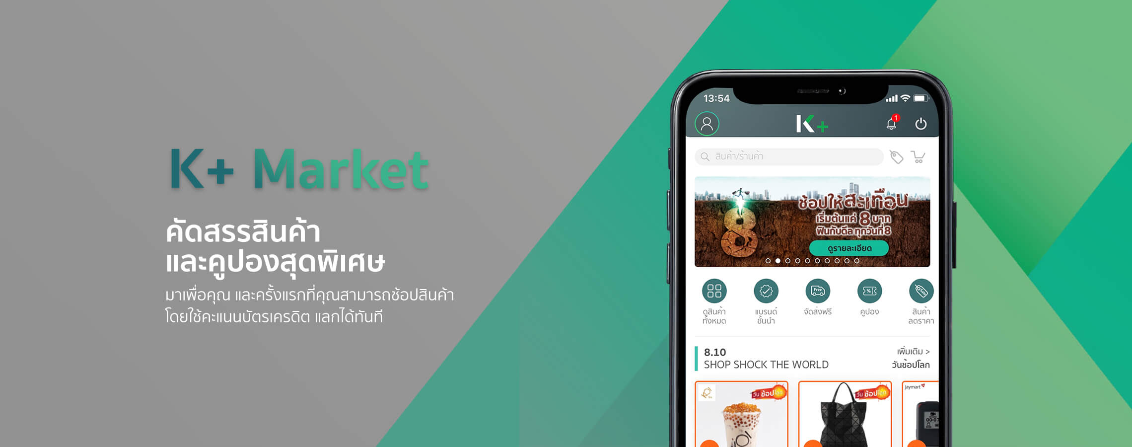 K+ Market ให้คุณได้เลือกสรรสินค้าหลากหลาย มั่นใจในคุณภาพที่คัดสรรอย่างดี จากร้านเด็ด แบรนด์ดัง ครอบคลุมทุกไลฟ์สไตล์ ไม่ว่าจะเป็น FOOD & BEVERAGE, COSMETICS, IT & GADGET, MOM & KIDS, SPORT และ ที่พลาดไม่ได้ สินค้า SUPER DEAL ที่มอบส่วนลดสูงสุดถึง 90% ที่พร้อมให้คุณเลือกช้อปด้วยเงินสด หรือ แลกคะแนนบัตรเครดิตแบบง่าย ๆ อีกทั้ง K+ Market ยังเป็นแหล่งรวมดีลเด็ด โปรโมทเด่น บัตรส่วนลด Gift Voucher และ Discount Code ต่าง ๆ มากมายให้ทุกการช้อปบนโลกออนไลน์ของคุณเป็นเรื่องง่าย และ ไม่เหมือนเดิมอีกต่อไป