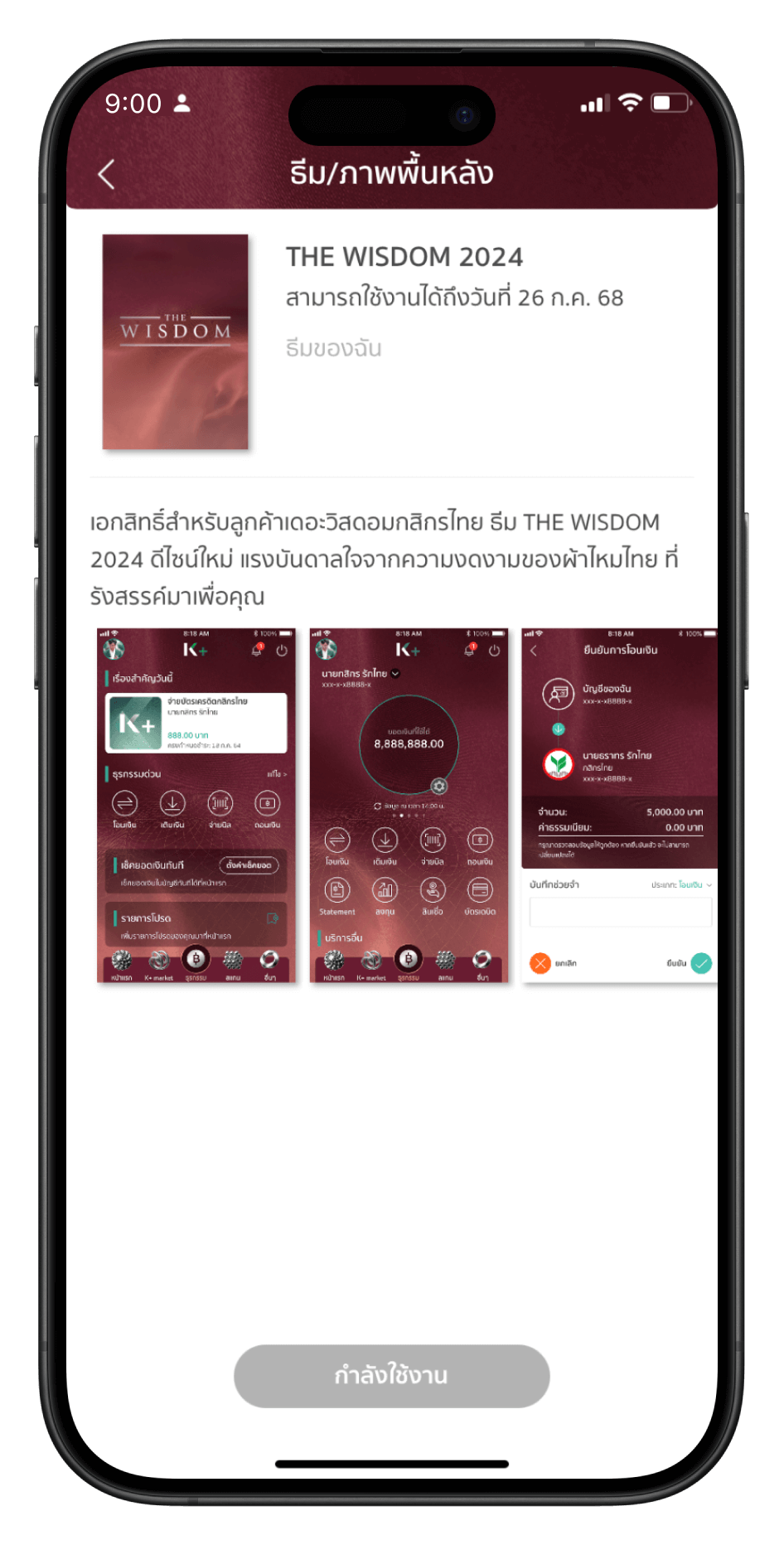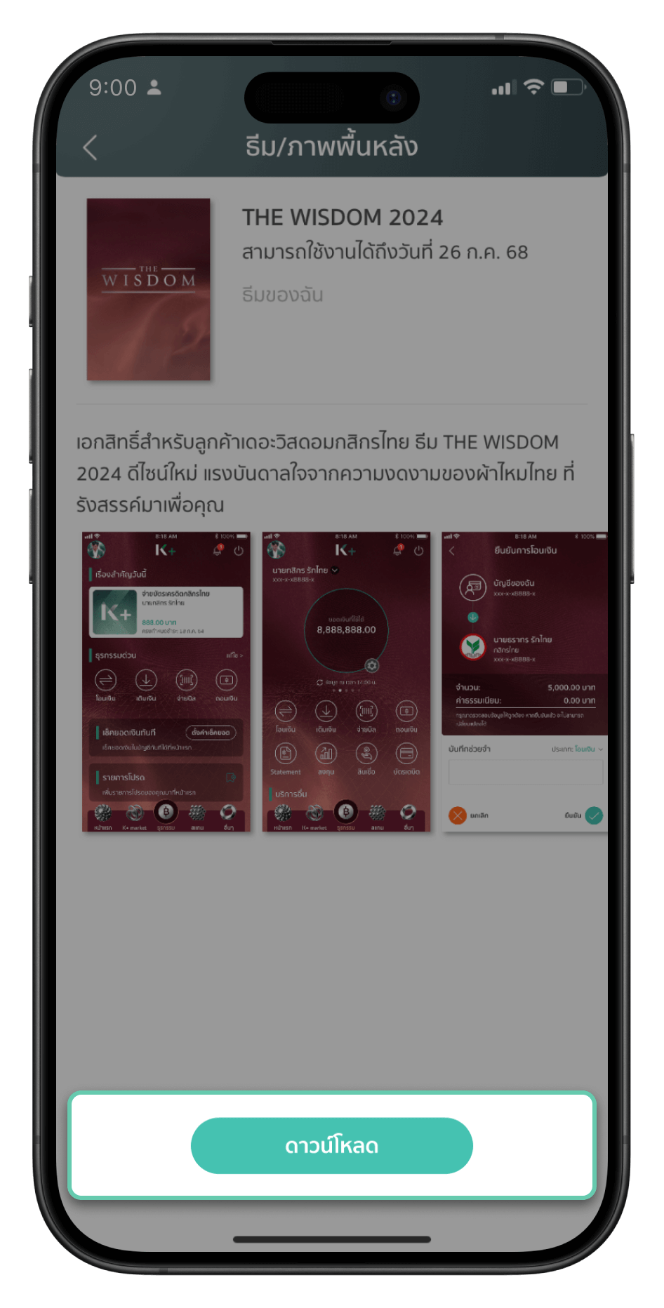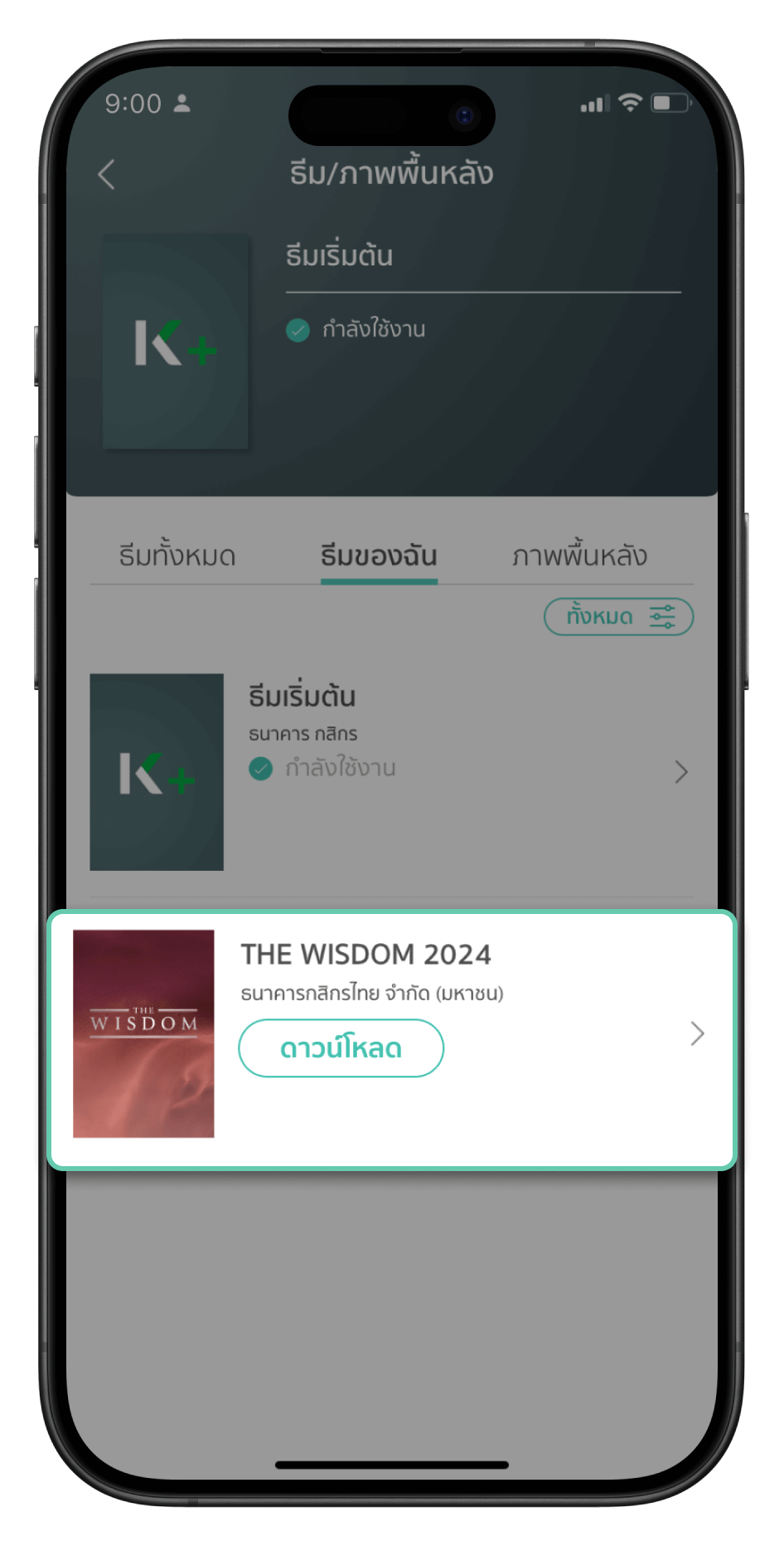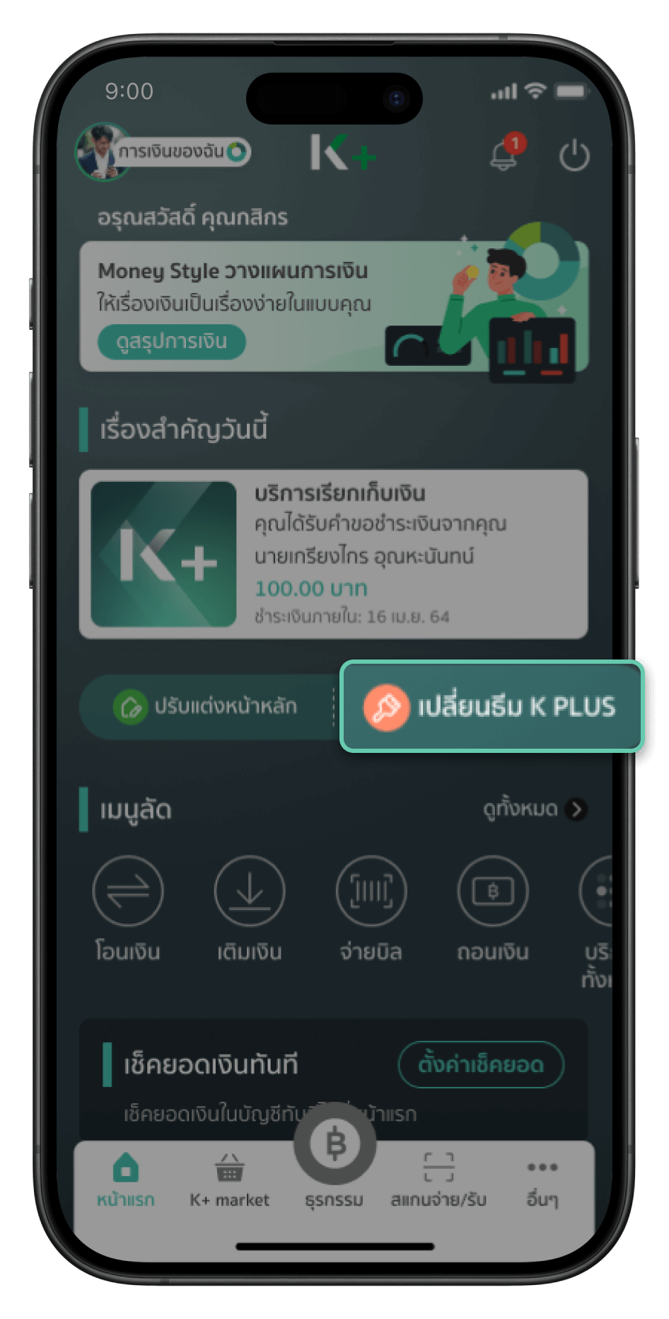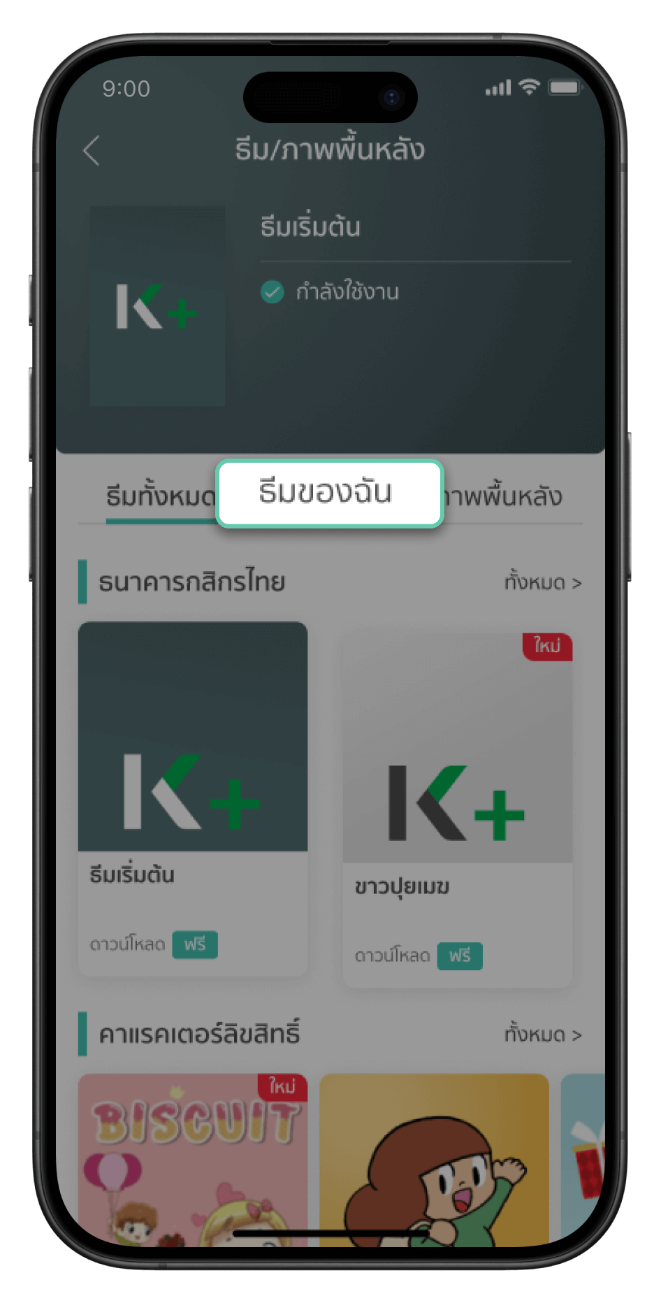 เข้าแอปพลิเคชัน K PLUS เลือกเปลี่ยนธีม K PLUS