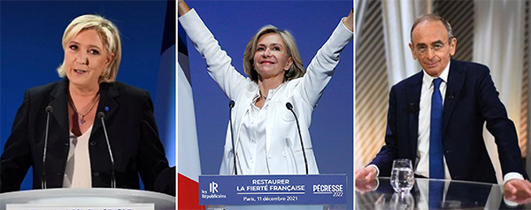 คู่แข่งของนายมาครง ไม่ว่าจะเป็น นางมารีน เลอ แปน แห่งพรรค Rassemblement National, นางวาเลอรี เปเครสส์ แห่งพรรค Les Républicains หรือ นายอีริก เซมมูร์ แห่งพรรค Reconquête ที่ต่างมีความคล้ายกันในหลาย ๆ จุด ได้แก่
