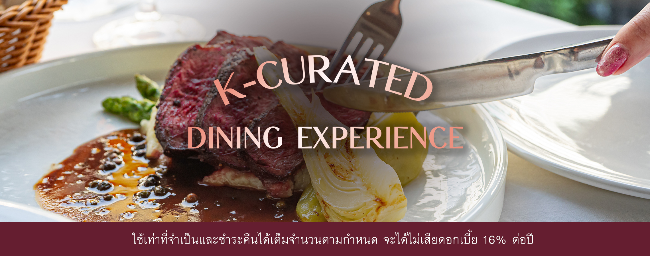 K-Curated Dining Experience ขอพาท่านดื่มด่ำไปกับอาหารหลากหลายสัญชาติที่เหมาะสำหรับมื้อพิเศษของครอบครัว อาทิ อาหารไทย อาหารอิตาเลียนโฮมเมด และอาหารฝรั่งเศสแบบดั้งเดิมที่จัดเสิร์ฟในบรรยากาศเป็นกันเอง เรียบง่ายแต่ลึกซึ้ง พร้อมเติมเต็มทุกมื้อให้กลายเป็นความทรงจำแสนอบอุ่นสำหรับทุกคนในครอบครัว พร้อมสิทธิพิเศษจากบัตรเครดิตเดอะวิสดอมกสิกรไทย ที่จะทำให้มื้อนี้ของคุณพิเศษมากขึ้นไปอีก