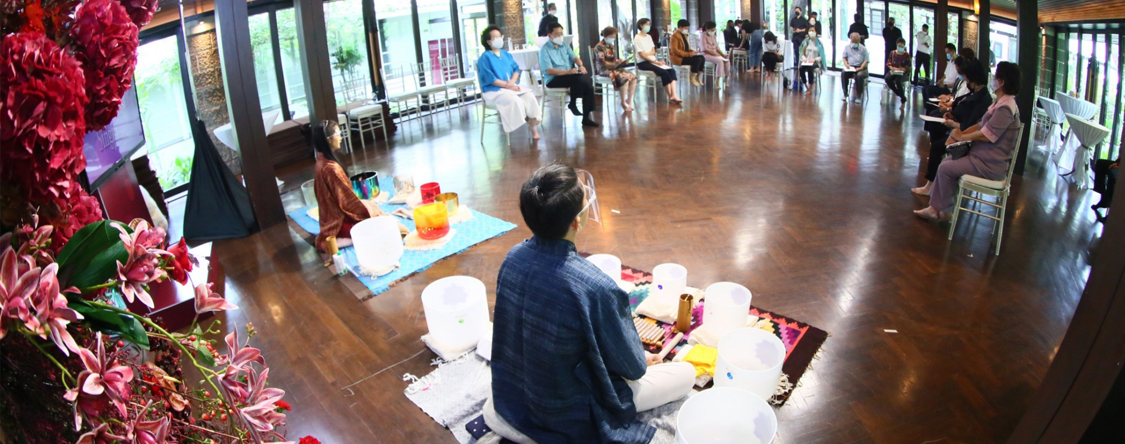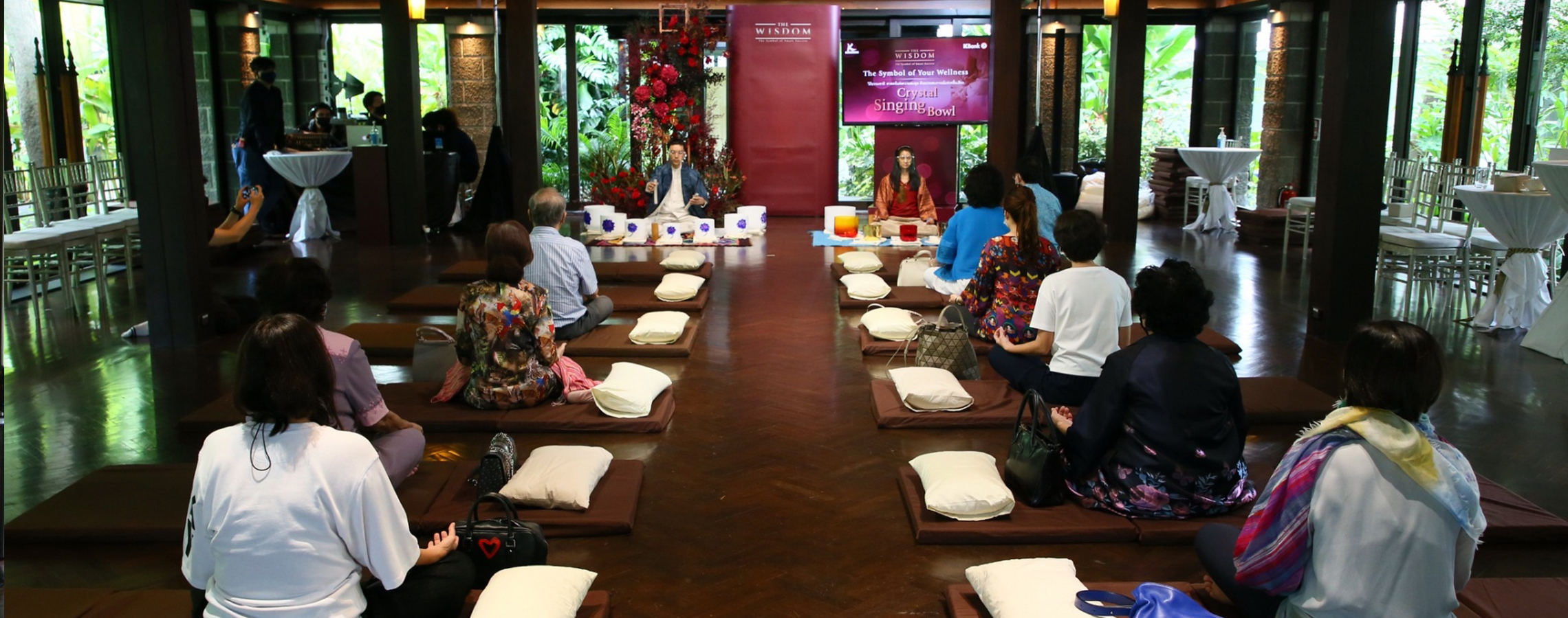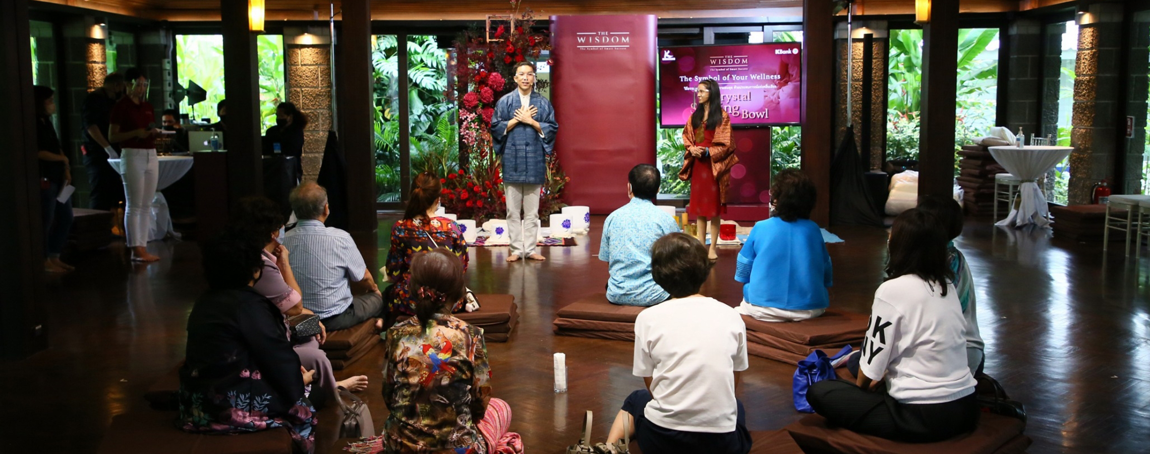 กิจกรรมคลื่นเสียงบำบัด หรือ Crystal Singing Bowls เป็นศาสตร์ดนตรีบำบัดด้วยหลักวิถีแห่งธรรมชาติ ด้วยการบรรเลงเสียงจาก Crystal Bowls ที่ทำจากแร่คริสตัล และ แร่รัตนชาติหลายชนิด มีคุณสมบัติในการส่งคลื่นพลังงานที่ต่างกัน เช่น คลื่นเสียงจากอเมทิสช่วยลดความเครียด ไพลินเสริมในเรื่องสมาธิ โดยพลังงานจากคลื่นเสียงช่วยกระตุ้นการไหลเวียนของเลือดลม และ ปรับสมดุลของโมเลกุลต่าง ๆ ในร่างกาย โดยบริการเดอะวิสดอมกสิกรไทยพาท่านลูกค้าผู้ทรงเกียรติร่วมรับประสบการณ์คลื่นเสียงบำบัด เมื่อวันที่ 5 และ 6 ส.ค. 63 ที่ผ่านมา