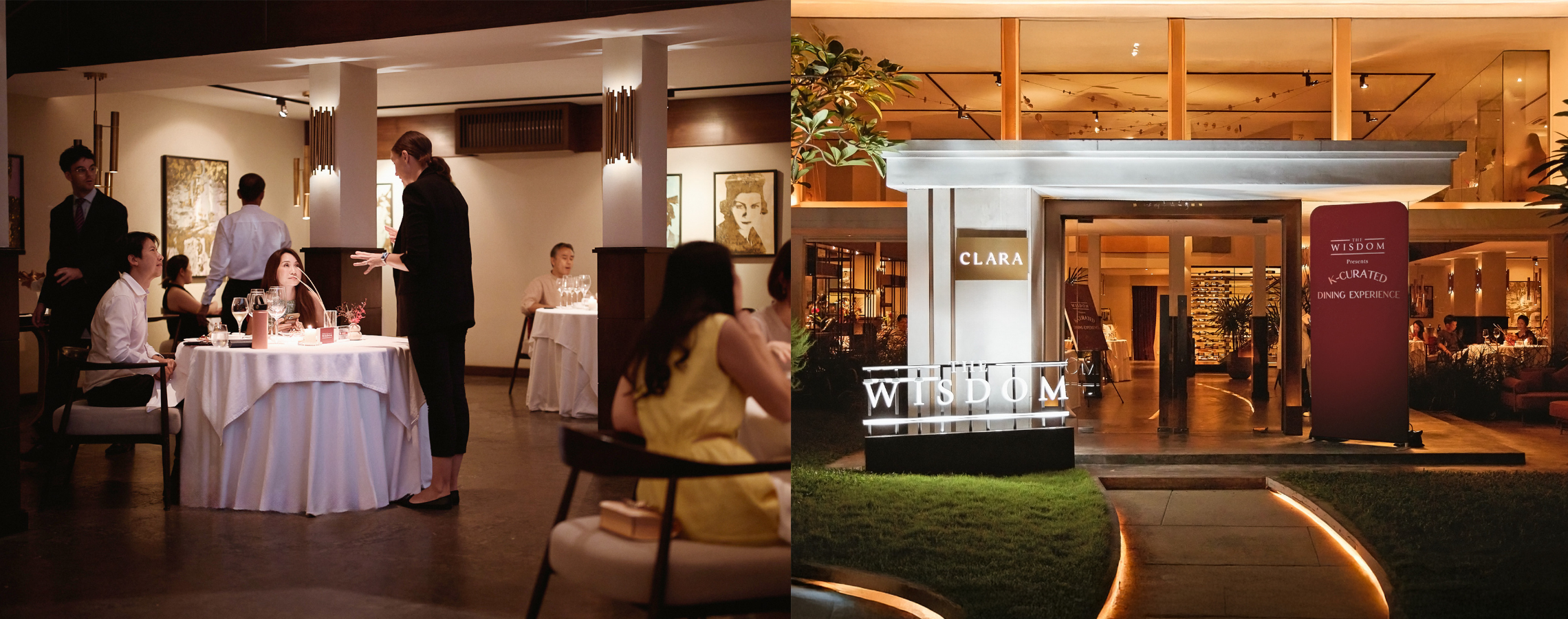 ทุกเมนูผ่านการรังสรรค์จากเชฟคริสเตียน มาร์เทนา (Christian Martena) ที่เล่าเรื่องราวเอกลักษณ์ของแต่ละเมนูจากแต่ละแคว้น พร้อมด้วยคุณไมเธอร์ ดี คาร์ลา เดล คอร์โซ – มาร์เทนา (Maitre D’ Clara Del Corso-Martena) ผู้เป็นแรงบันดาลใจในการก่อตั้งร้าน CLARA ร่วมต้อนรับและดูแลลูกค้าเดอะวิสดอมกสิกรไทยอย่างใกล้ชิด ให้ลูกค้าทุกท่านได้อิ่มเอมและรื่มรมย์ท่ามกลางบรรยากาศของอาร์ตแกลอรี่ สร้างความประทับใจในค่ำคืนแห่งมื้อพิเศษได้เป็นอย่างดี