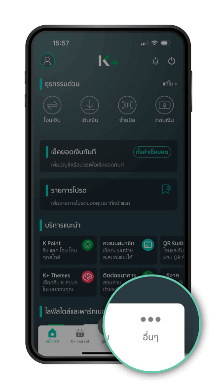 เข้าแอปพลิเคชัน K PLUS เลือกเมนู “อื่นๆ”