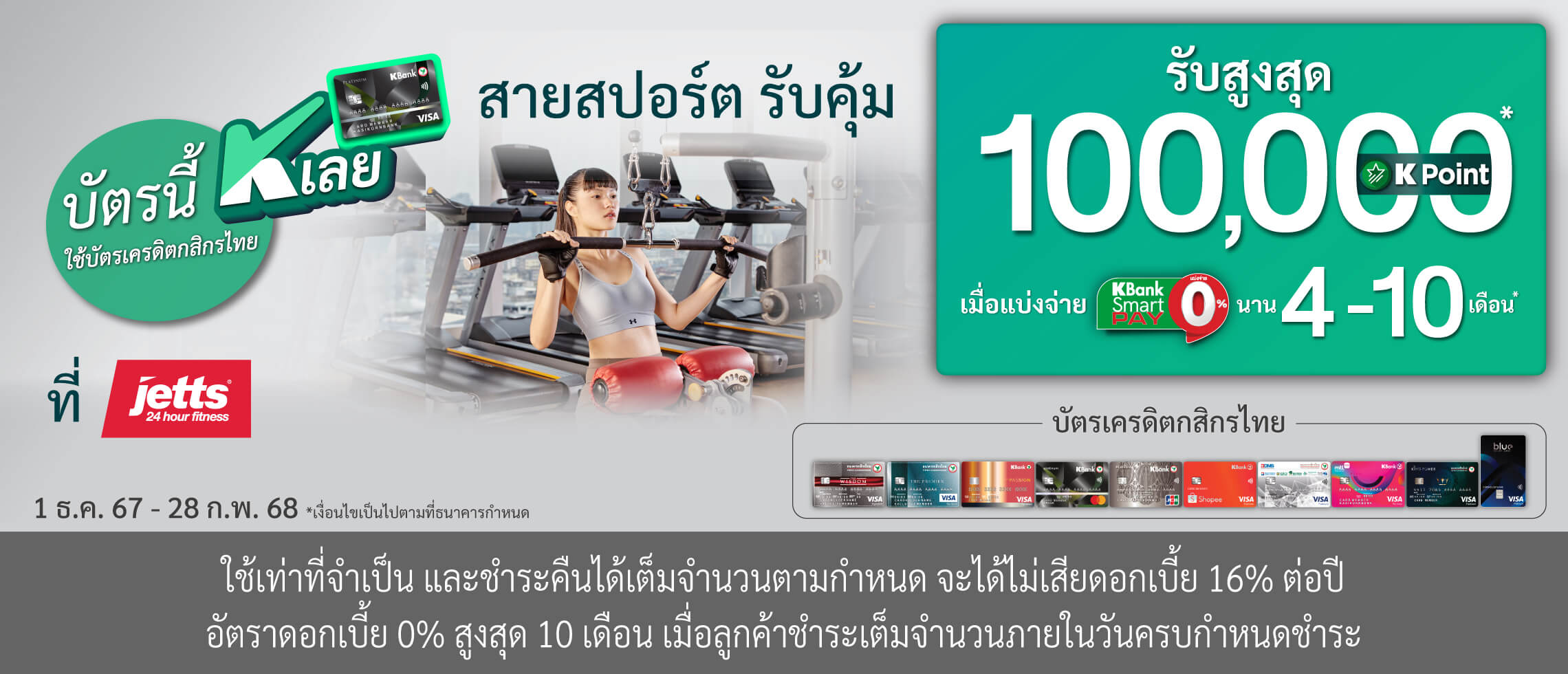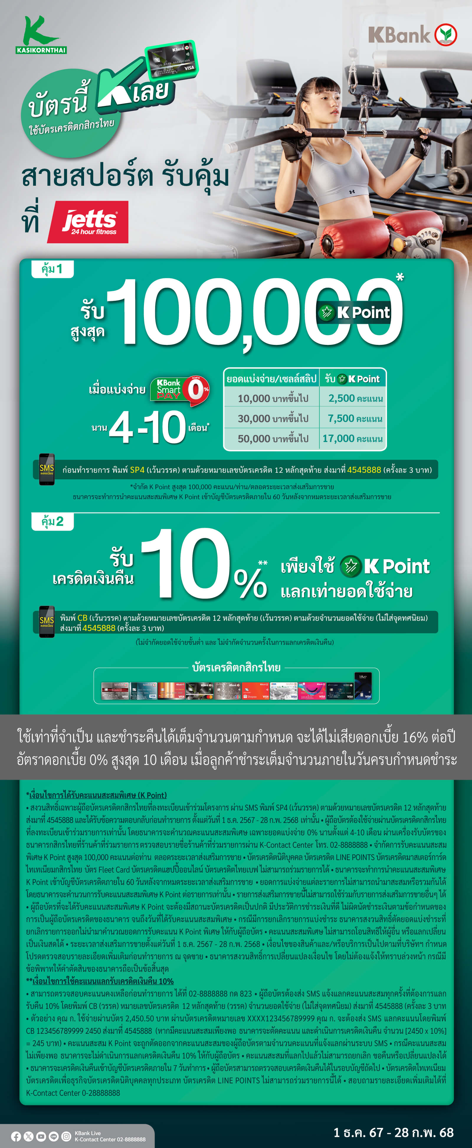 รับคะแนนสะสมพิเศษสูงสุด 100,000 K Point เมื่อแบ่งจ่าย 0% ที่ Jetts Red